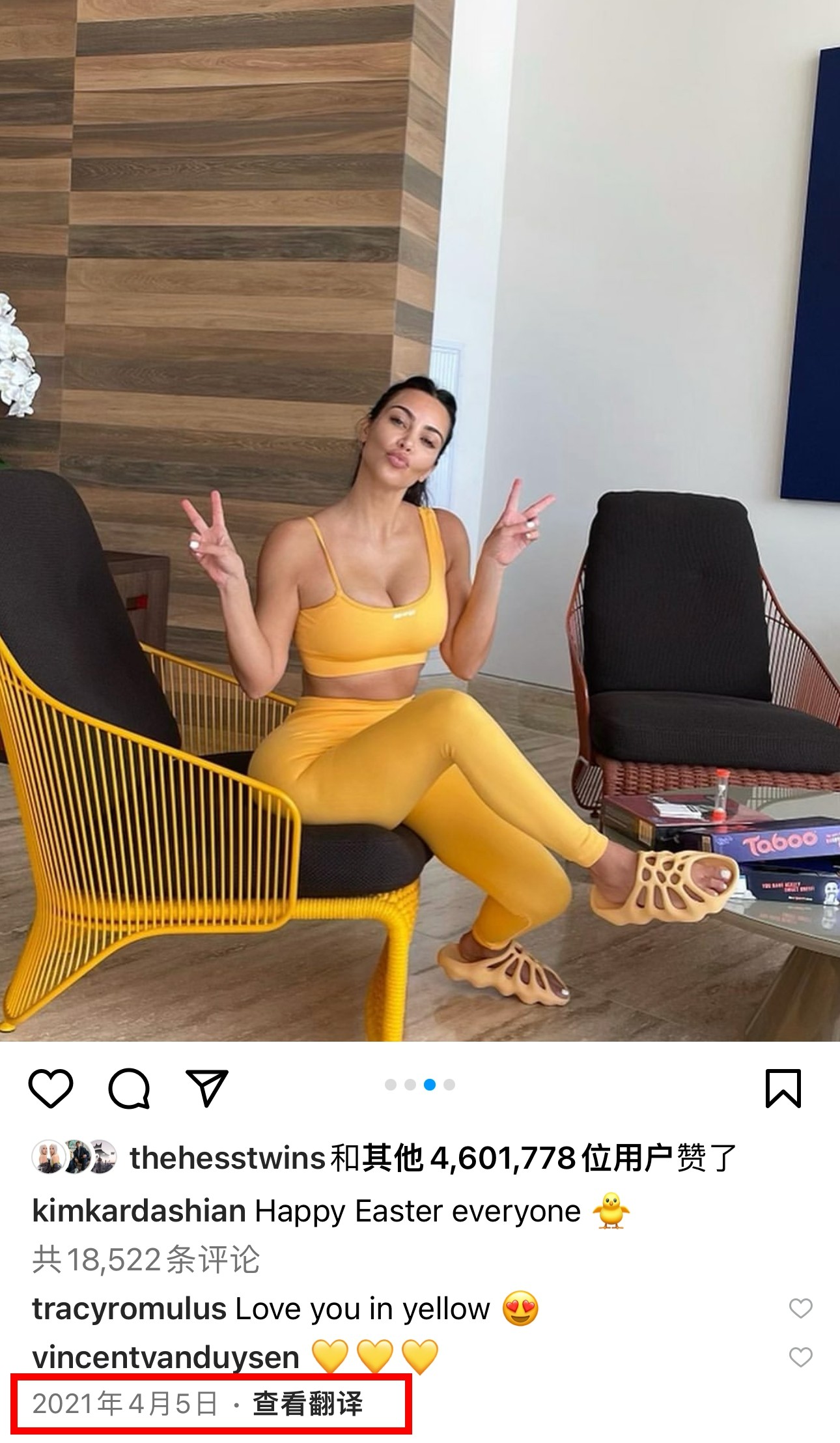 早在 21 年卡戴珊就曾性感上脚过这双 Yeezy 450 Slide。