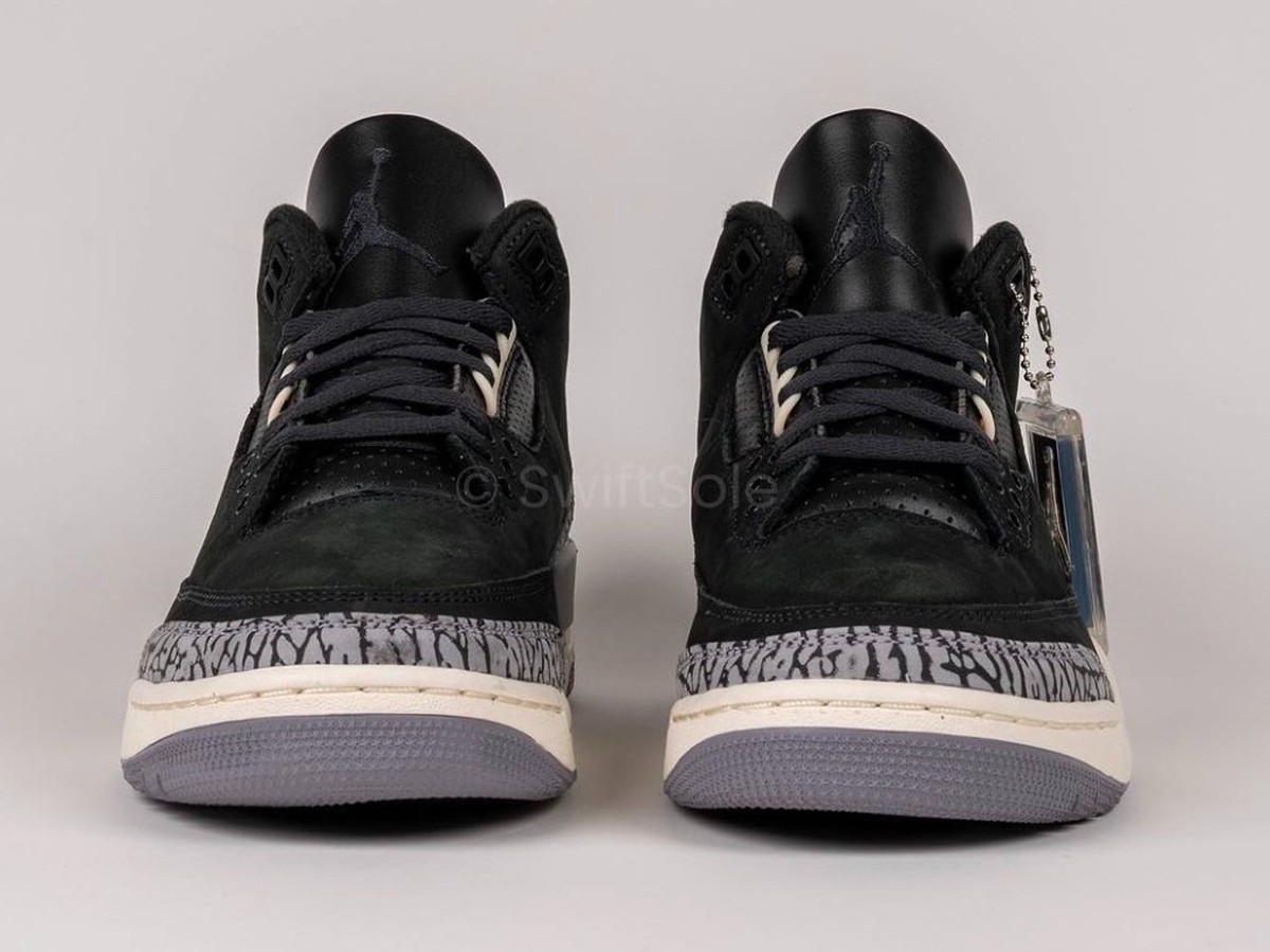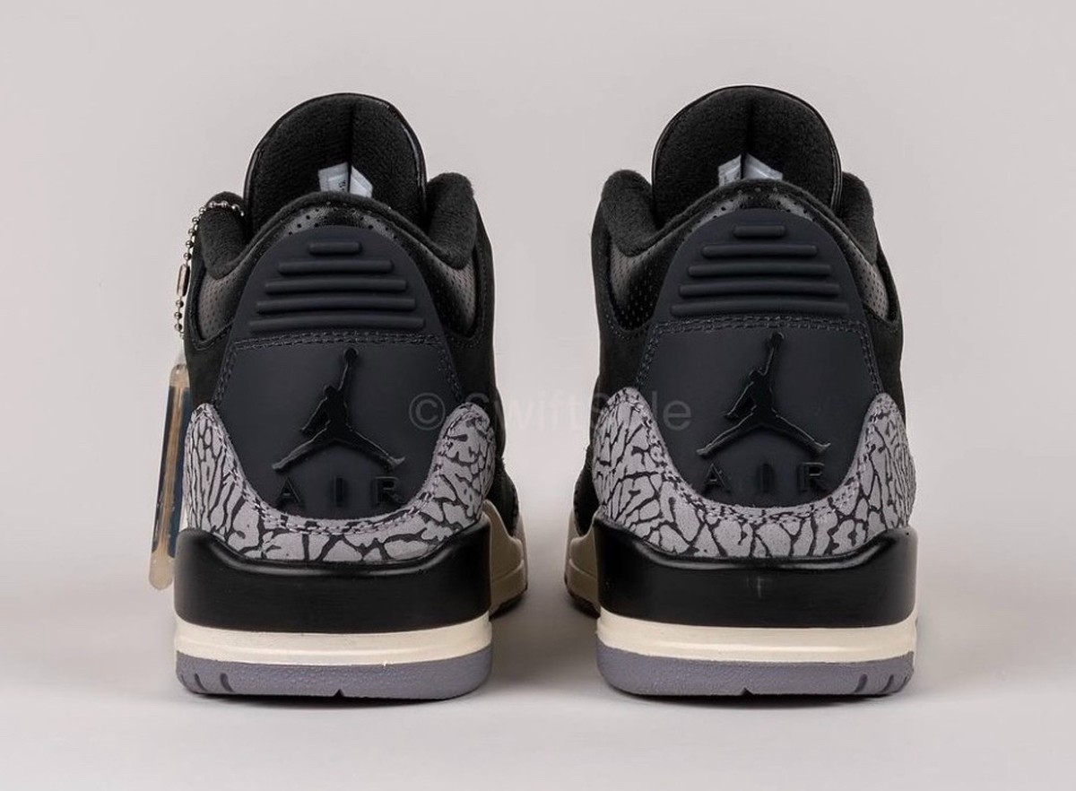 鞋头与后跟带有 Air Jordan 3 标志性爆裂纹细节,并且也以灰色呈现,乍看与「黑水泥」Air Jordan 3 确实相似度超高。