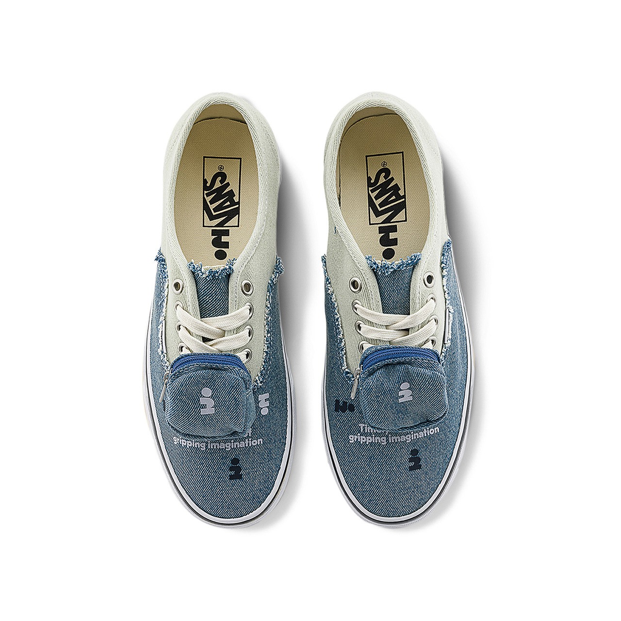 其中 Authentic 设计感十足,在鞋头蓝色丹宁布与鞋身米白色帆布拼接处采用破坏设计衔接,鞋面还有 Tagi. 的品牌标语点缀。