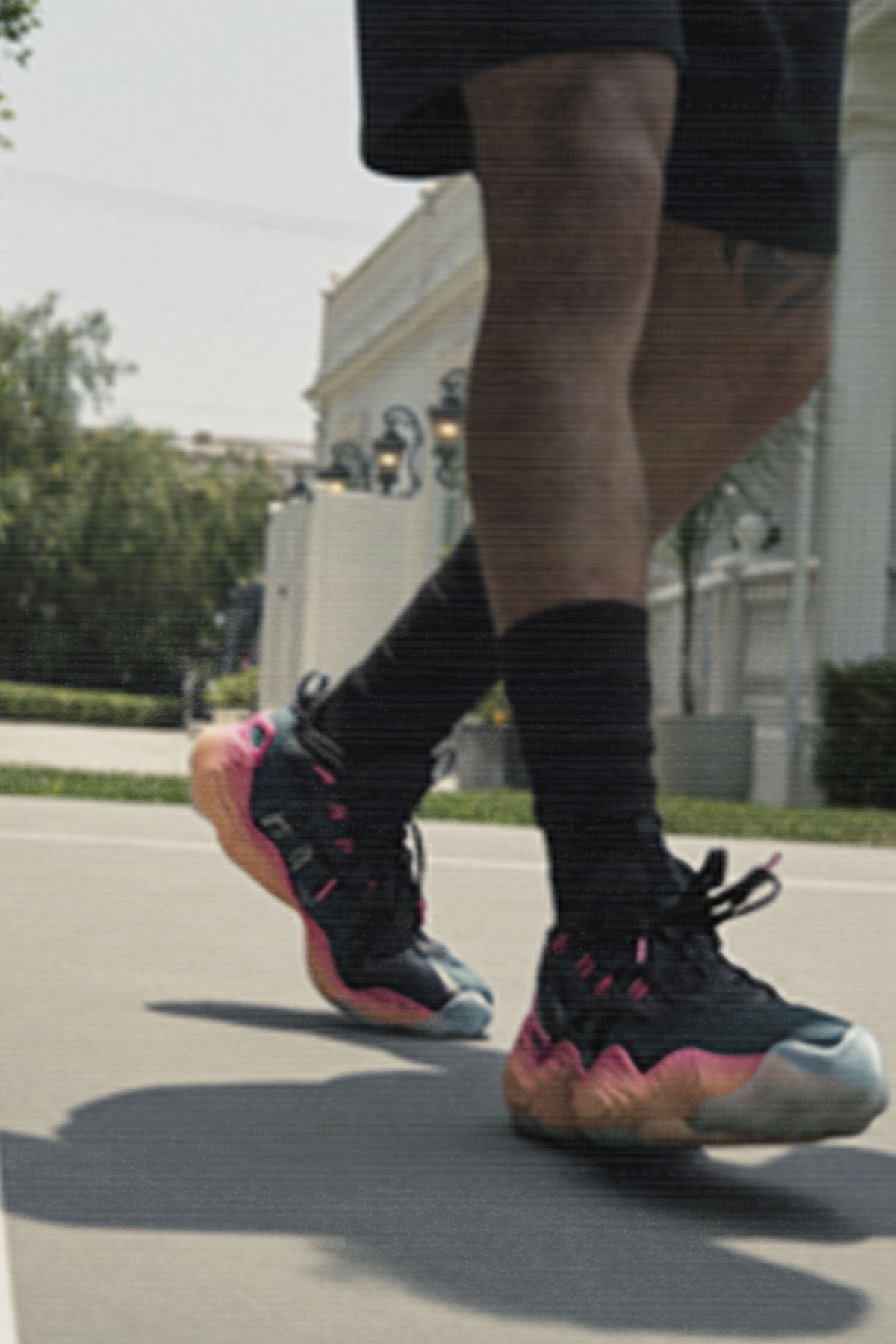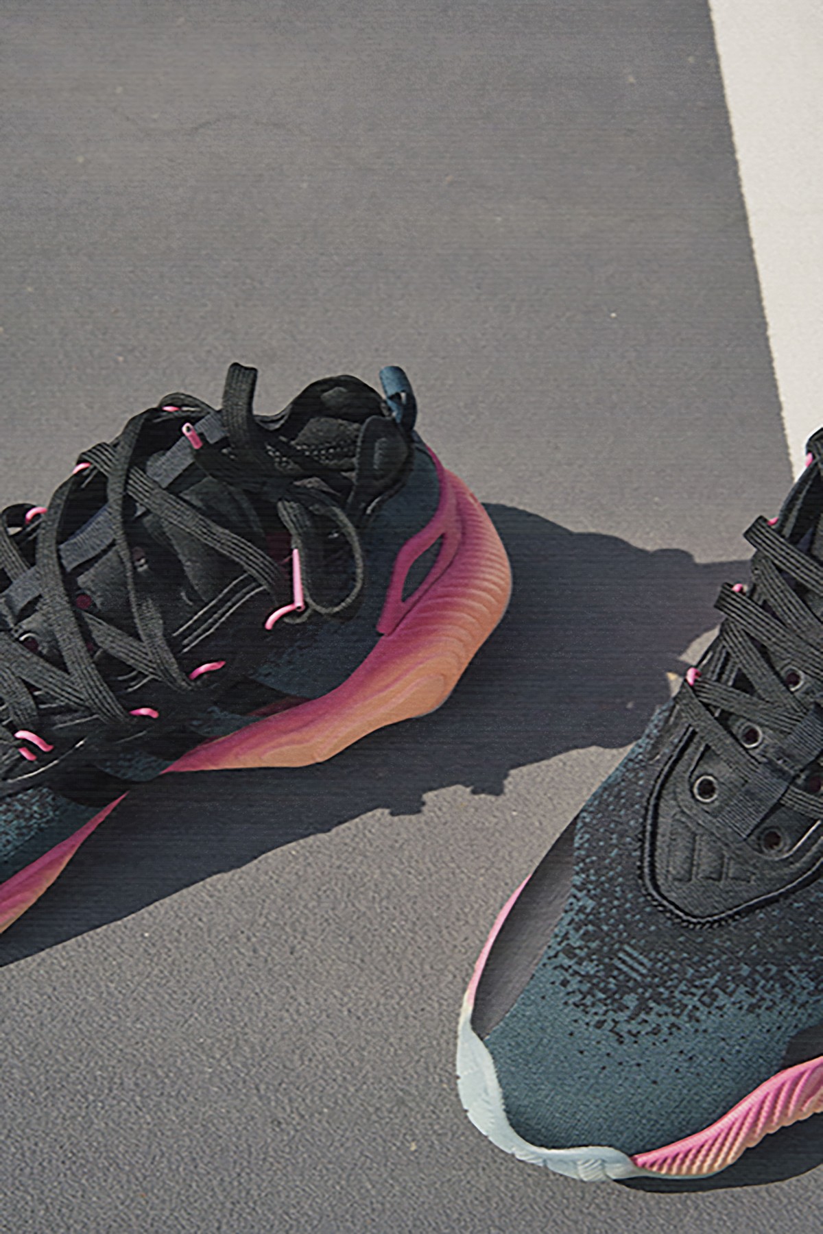 首发配色 adidas Trae Young 3 以「元宇宙」为灵感进行创作,鞋面采用黑粉双色组成,骚气十足。