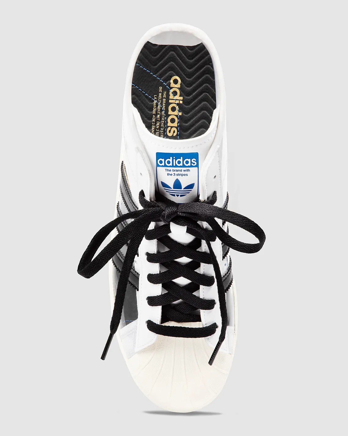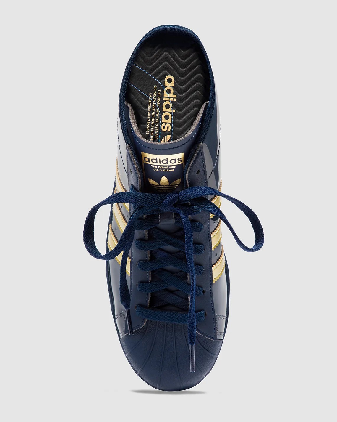 其余部分延续经典设计方案,白色鞋舌点缀蓝色三叶草 Logo。