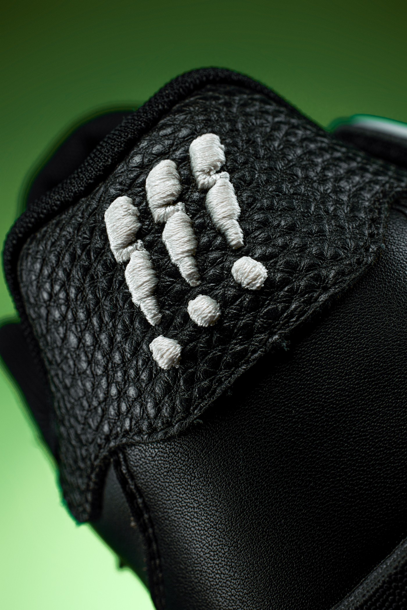 鞋身采用全皮材质包裹,在细节处加入夜光 TPU 、爆裂纹理、982 字样魔术贴等设计,以时尚元素重新演绎经典鞋型。