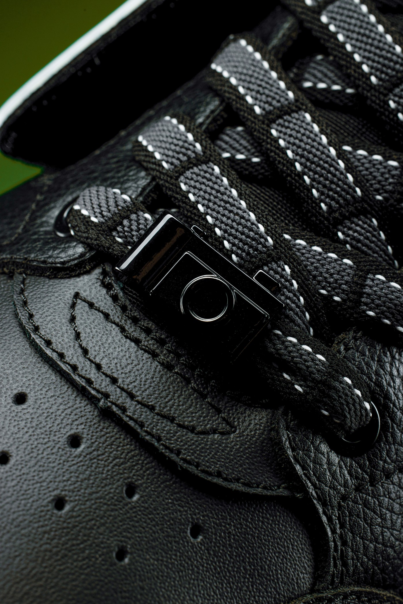 鞋带扣和鞋带分别以相机和胶片的形象呈现,代表着圆梦背后千百次的练习。