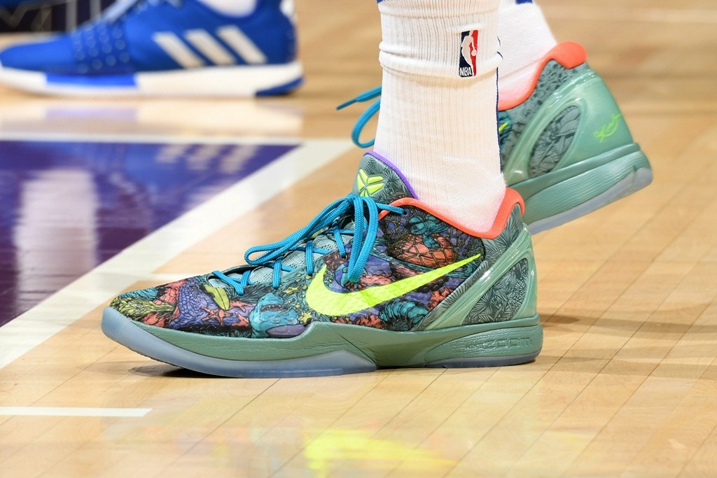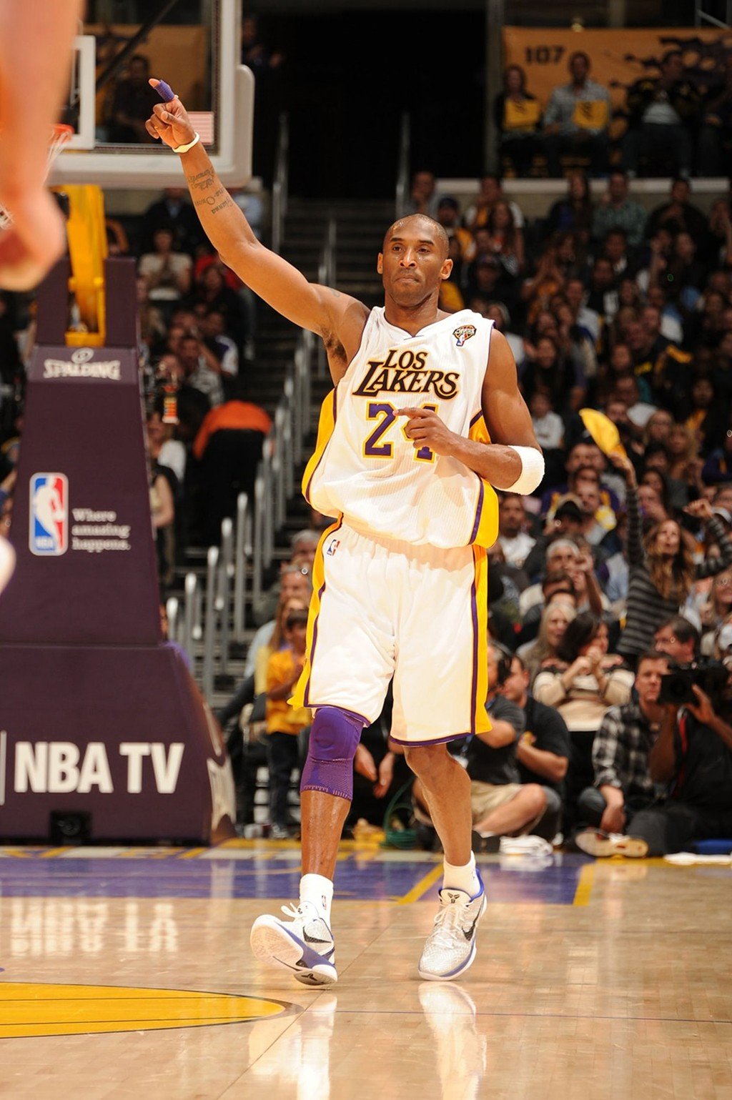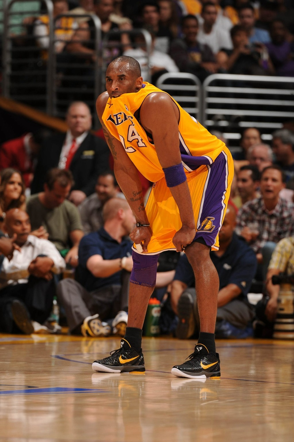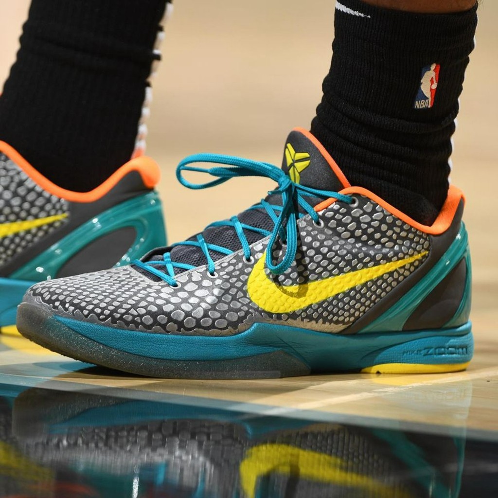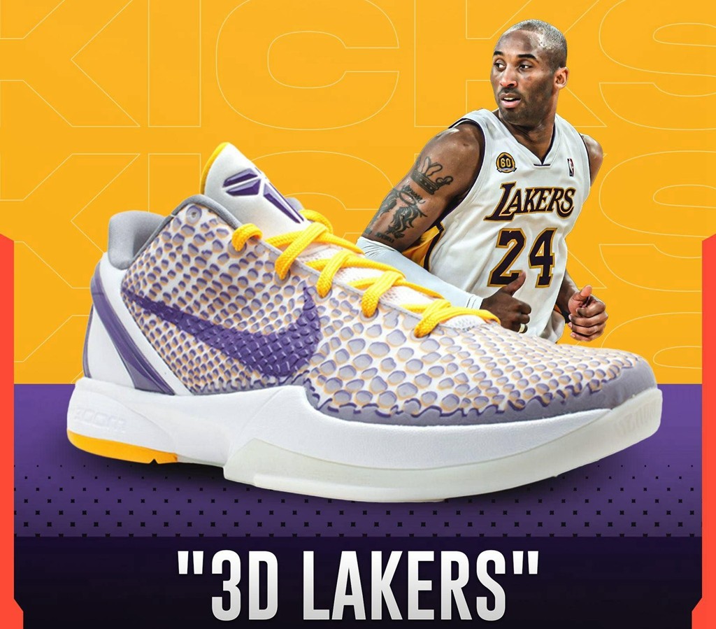 除了黑、白两款季后赛配色,Kobe 6 还有不少其他的湖人主题款,比如这双当年媒体日上脚的紫金渐变配色,就是复刻呼声极高的配色之一。