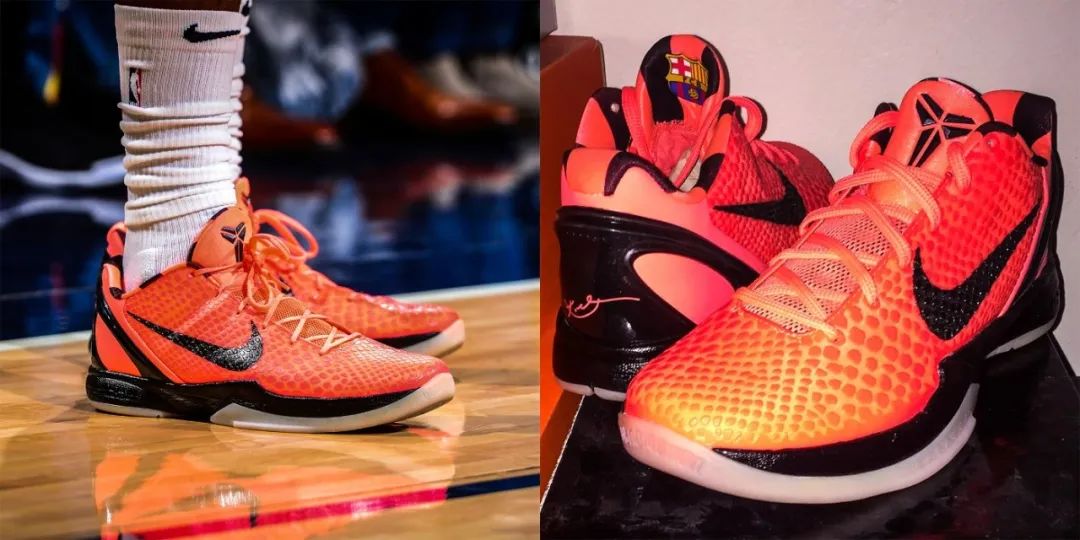 看完日落大道,再来看看这双和日落大道有异曲同工之妙的 Kobe 6 “FC Barcelona Mango”。
