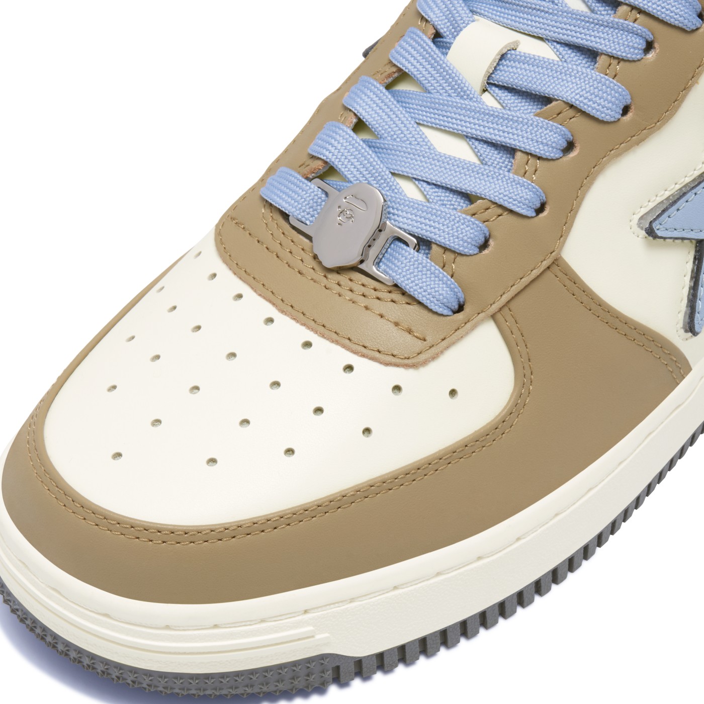 第二双则采用米白色为底,搭配暖棕、浅蓝色妆点鞋身,少年感十足。