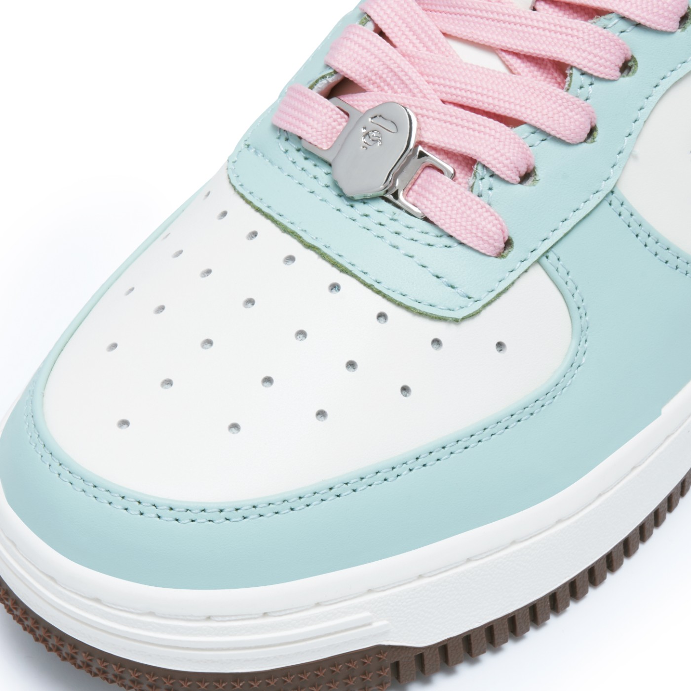 第一双采用白色为底,辅以薄荷绿色框架和粉色点缀细节,十分清新。
