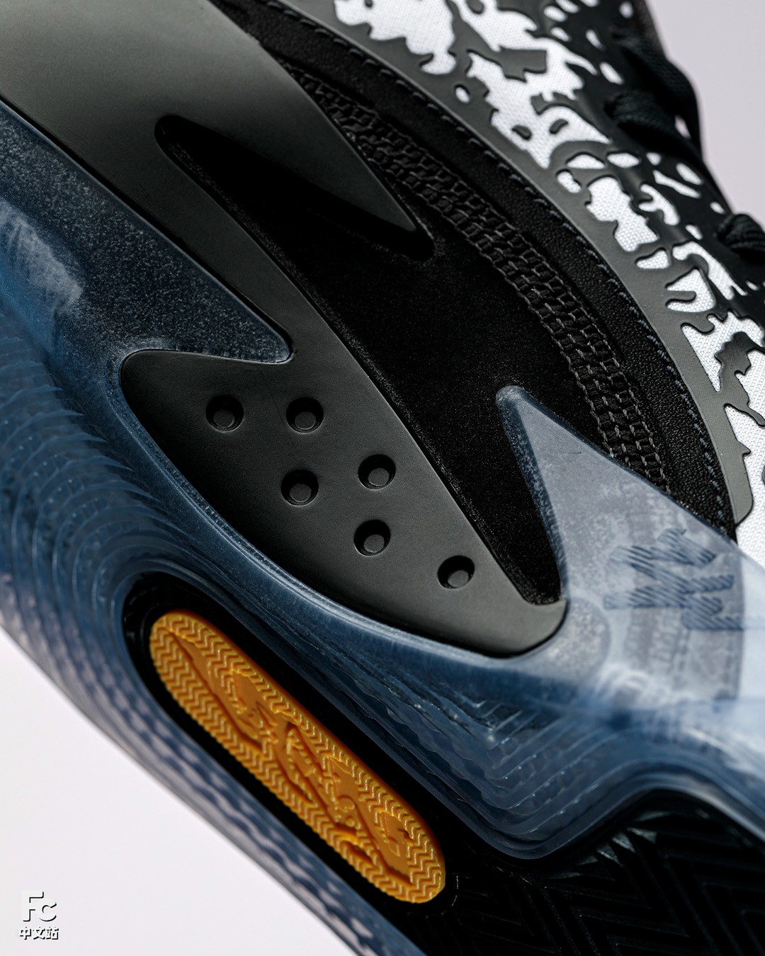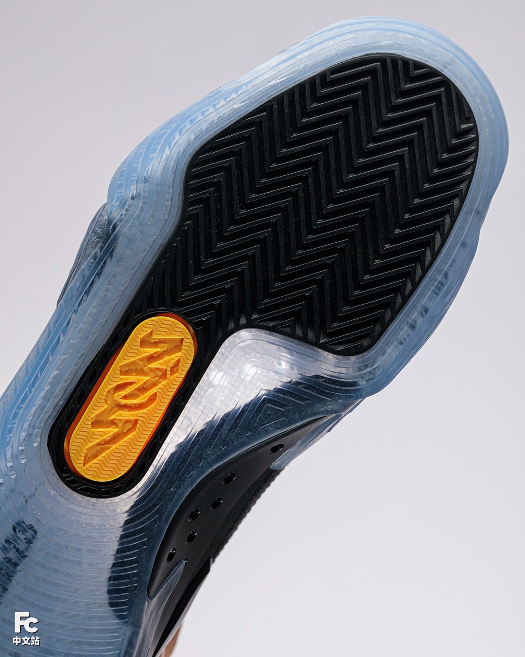 为了充分展示这次新中底结构,还专门设计了一块代表 Zion 的 Z 字形透明开窗,将鞋垫装进去后就能透过这里看到黄色中底。