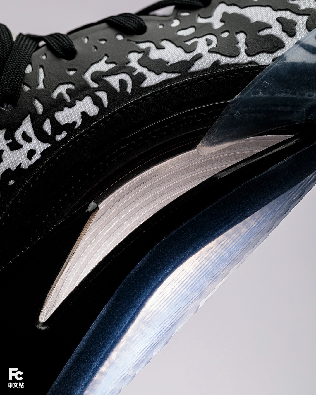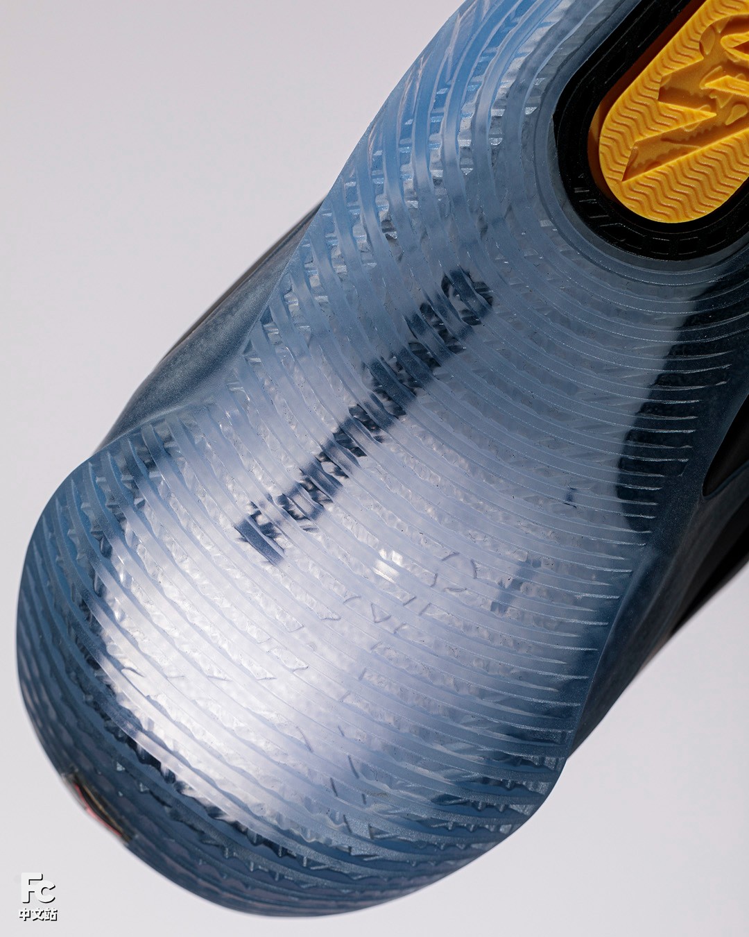 后掌部分则采用通透感十足的半透明橡胶包裹,里面透出 Formula 23 字样,丰富了细节表现。