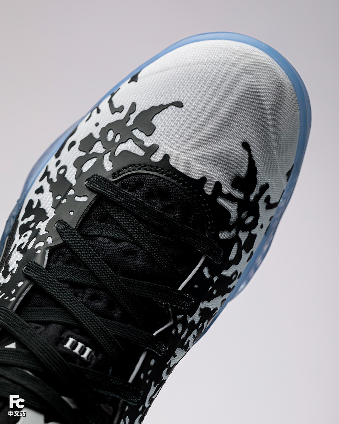 在布面之上,还覆盖着一层厚实的热熔材质,而热熔部分的图案,据悉是设计师们利用 3D 成像技术,捕捉 Zion 从泥泞中起跳时喷溅的水花,从而得到的效果。
