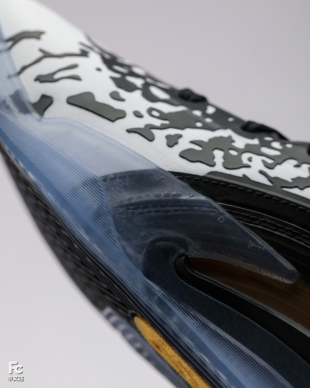 除了 Formula 23 高性能泡绵外,前掌部位还嵌入一大块 Zoom Air 气垫单元,中足部分则是一块 TPU 稳定片。