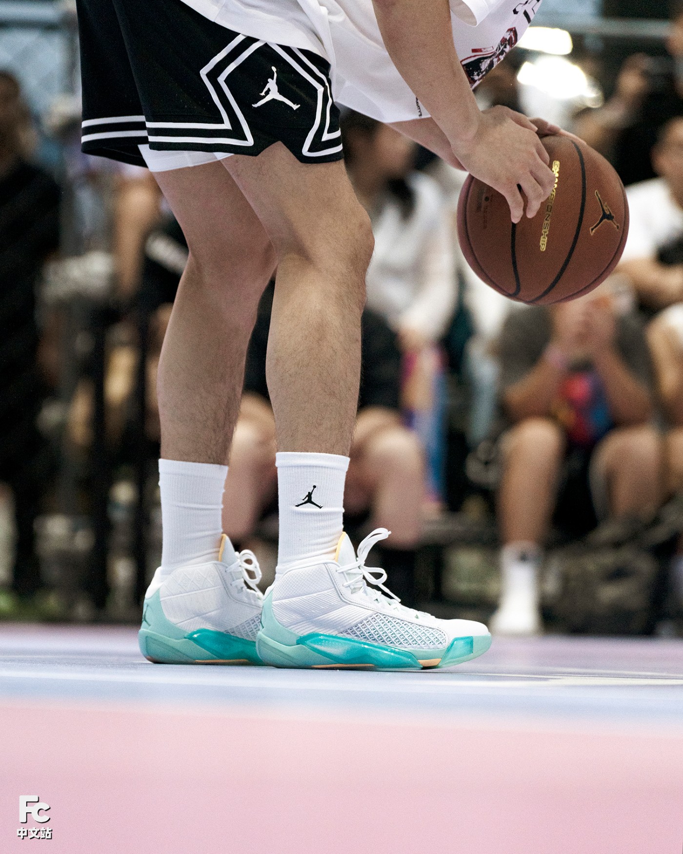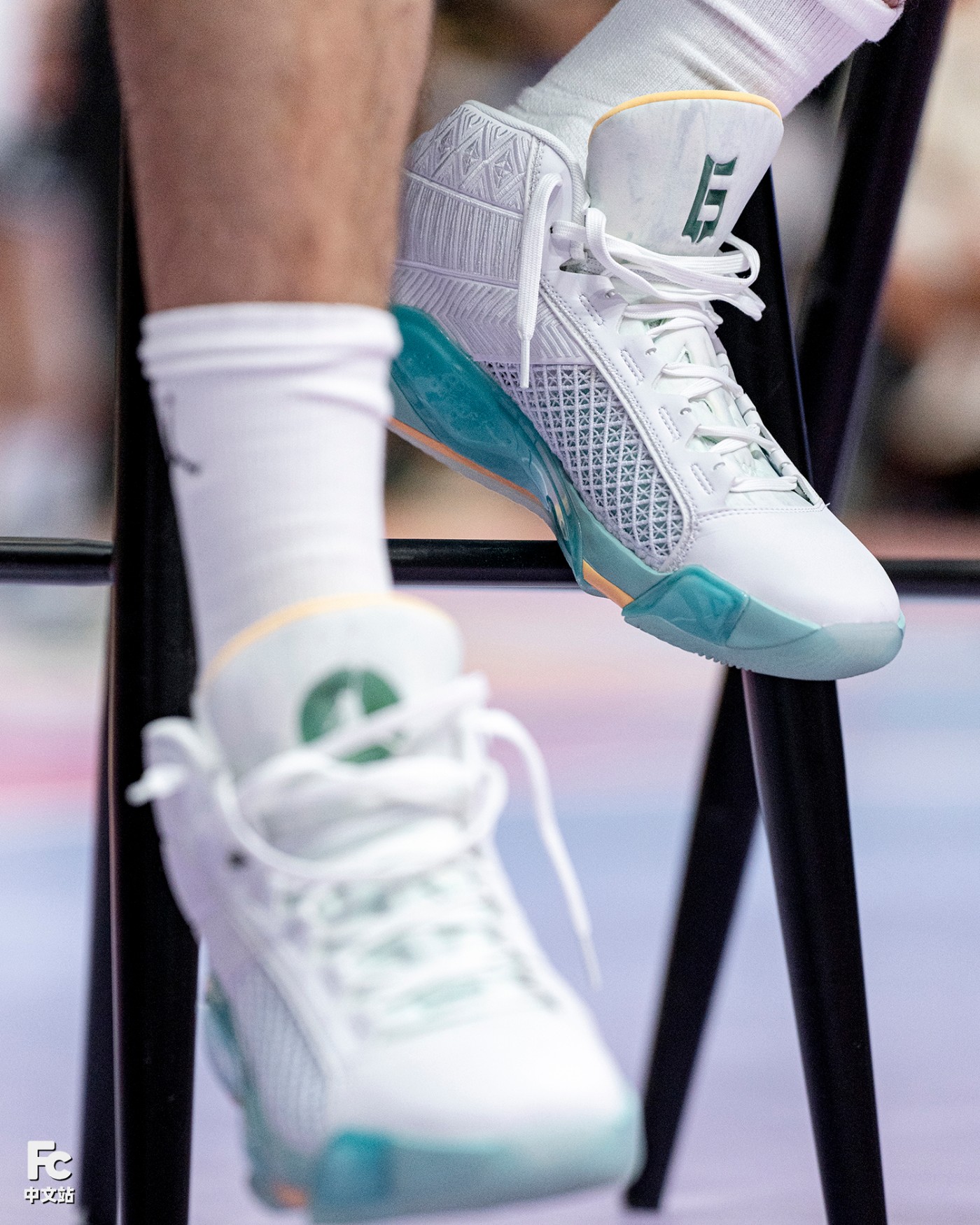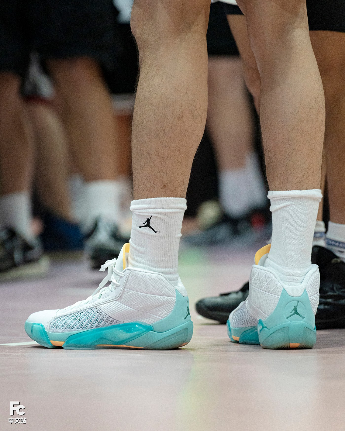 昨晚我们熟悉的郭艾伦突袭「下站东单」赛场,除了与吴悠及现场球员对位较量,脚下首次曝光的 Air Jordan 38 “Guo Ailun” PE 同样吸引了全场目光!