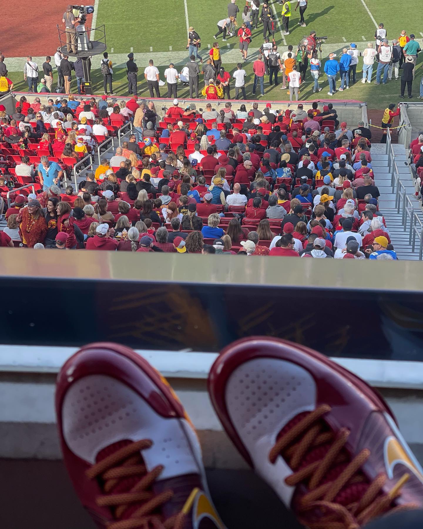 作为南加州大学的 PE 配色,整体采用红黄搭配,后跟处有 USC 字样,不少人会把这一双和全明星配色搞混。