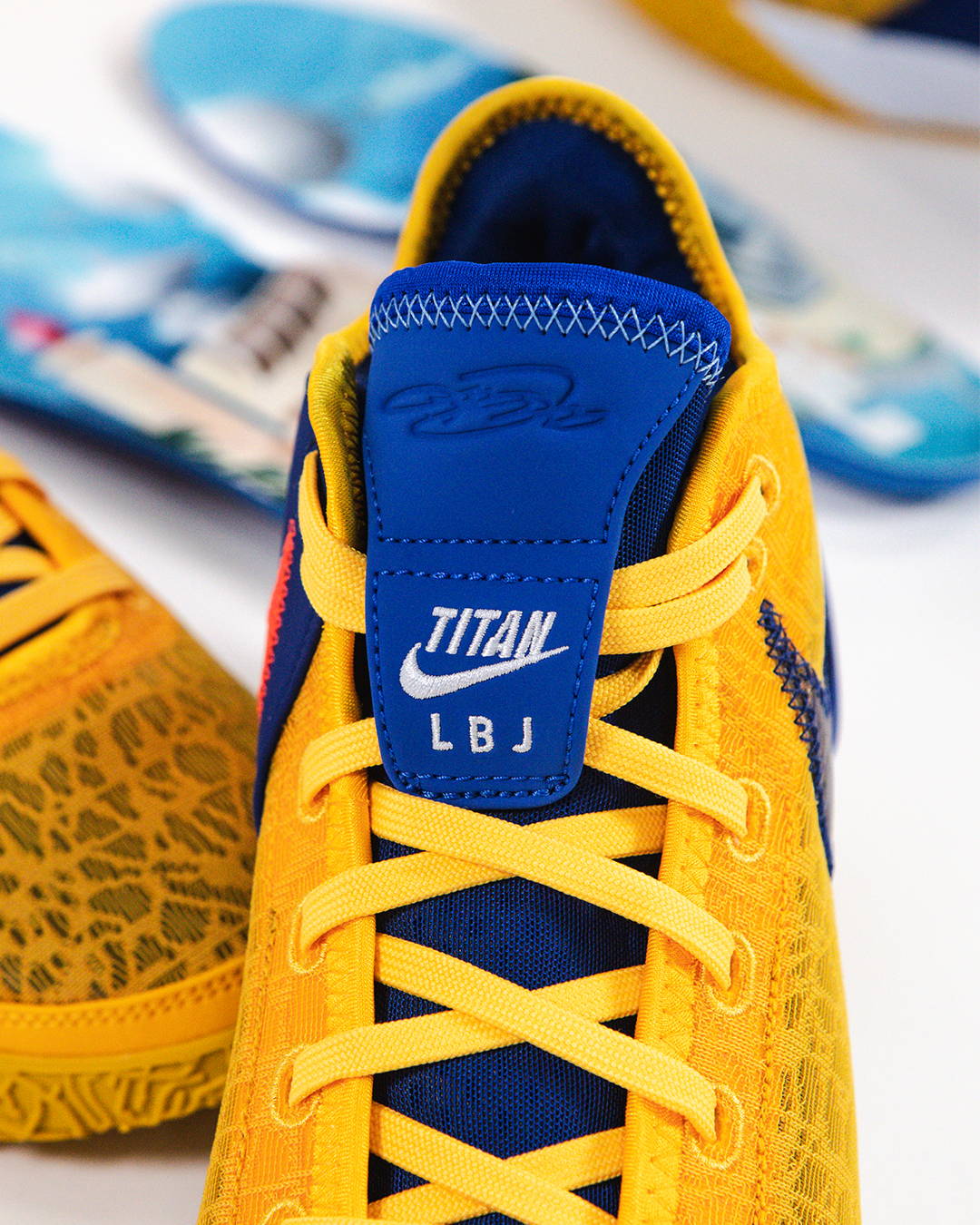 鞋舌处印有老詹签名和 Titan Logo,彰显联名鞋款身份。