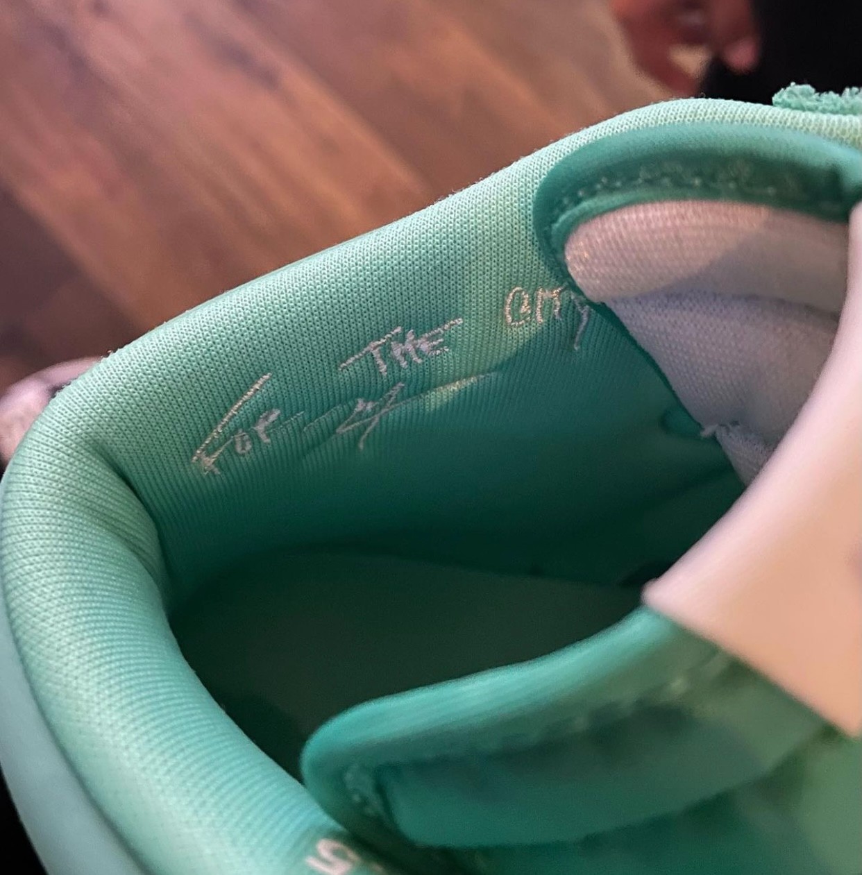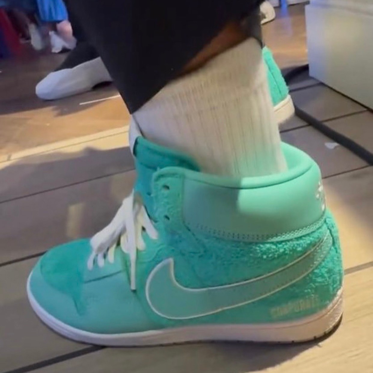鞋后跟印有 Corporate Logo 和该店铺 GOT EM 标语,彰显联名鞋款身份。