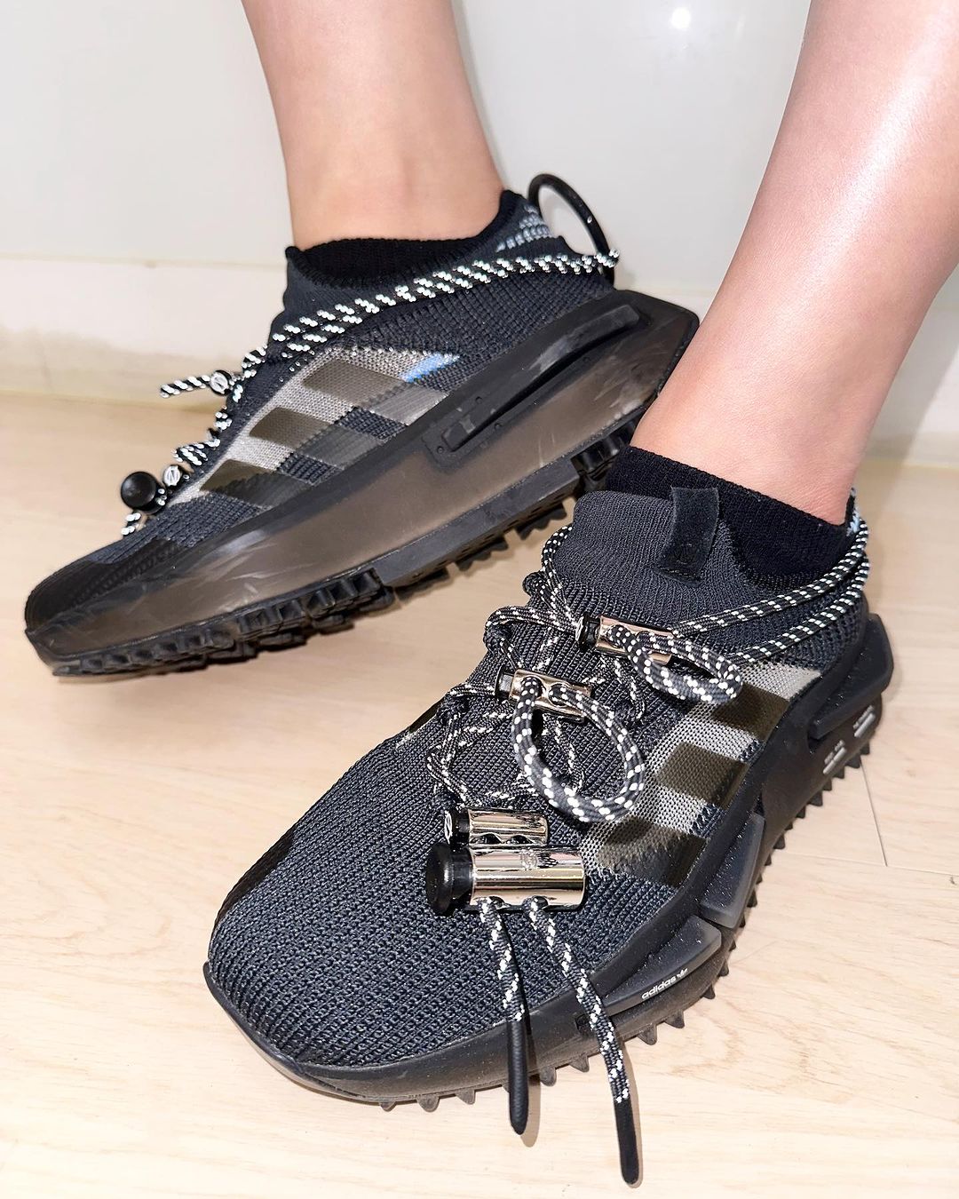 今年 6 月现身三叶草活动,上脚了超火的鲨鱼面包鞋 Adimatic。