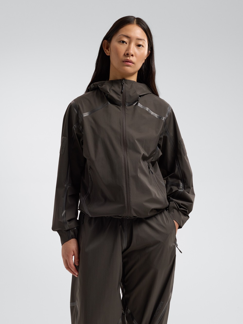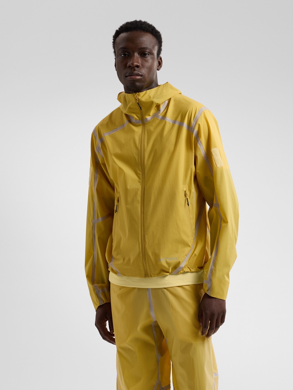 为更好应对山系活动的多变环境,无性别的连帽拉链夹克,选用防风、防泼水、防撕裂耐候的风壳面料。