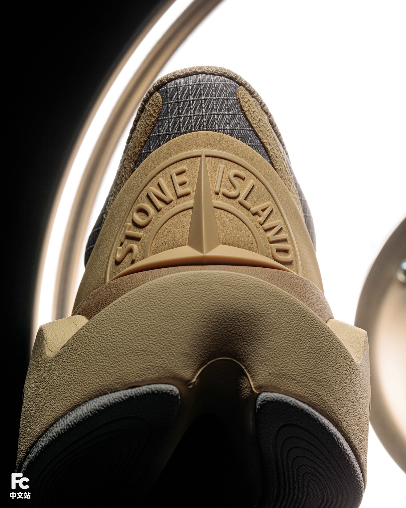 鞋后跟刻画立体 Stone Island 经典的罗盘 Logo,彰显联名鞋款身份。