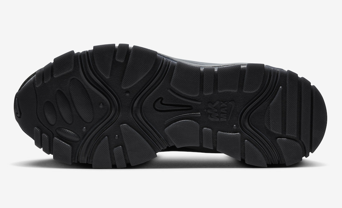 整双鞋以通体黑色示人,鞋身选择网眼织物和麂皮面料包裹,呈现出「黑武士」视觉效果的同时,又保证了质感与透气性。