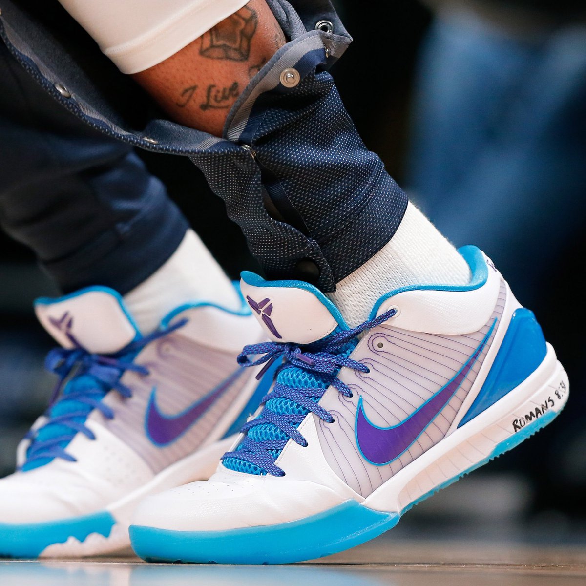 「选秀日」作为当年 Kobe 4 复刻的首发配色,以最初选中科比的黄蜂队为灵感,蓝白搭配的鞋身非常清爽。