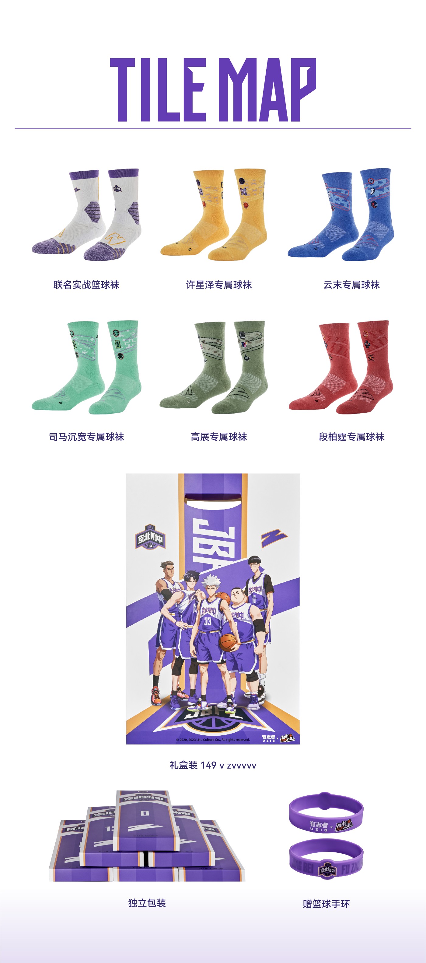 设计灵感来源于「左手上篮」中的五位主角,并一次性带来五双个性鲜明的球袜。