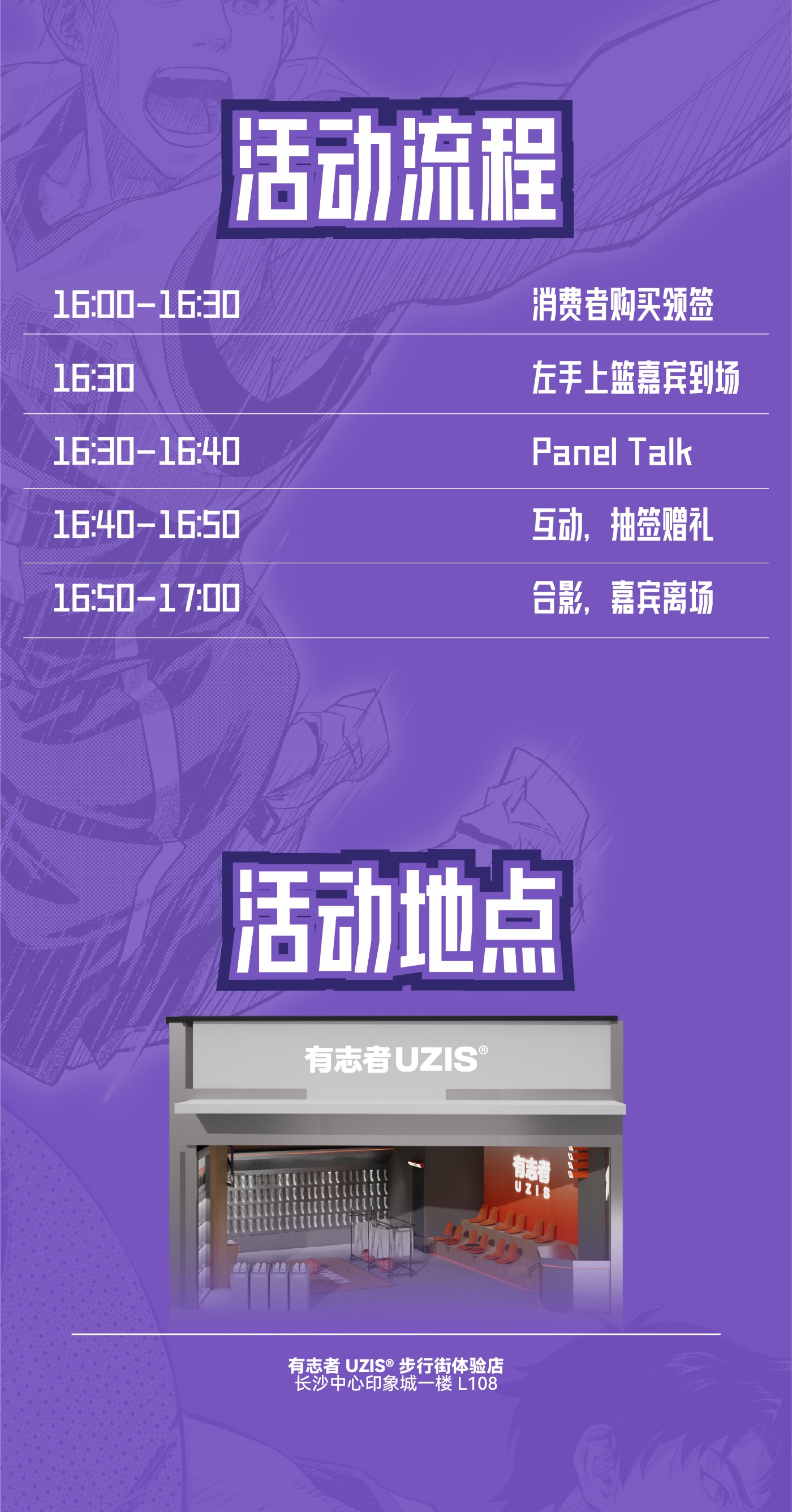 当天,「左手上篮」团队还将于「有志者 UZIS」长沙步行街体验店开启线下座谈会,有条件的朋友不妨前去打卡参与!