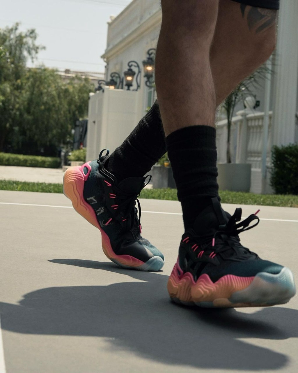 独特的等高线中底搭配晨曦渐变色,颜值这块已经甩出二代两条街,整体非常有 adidas Basketball 革新后的风格。