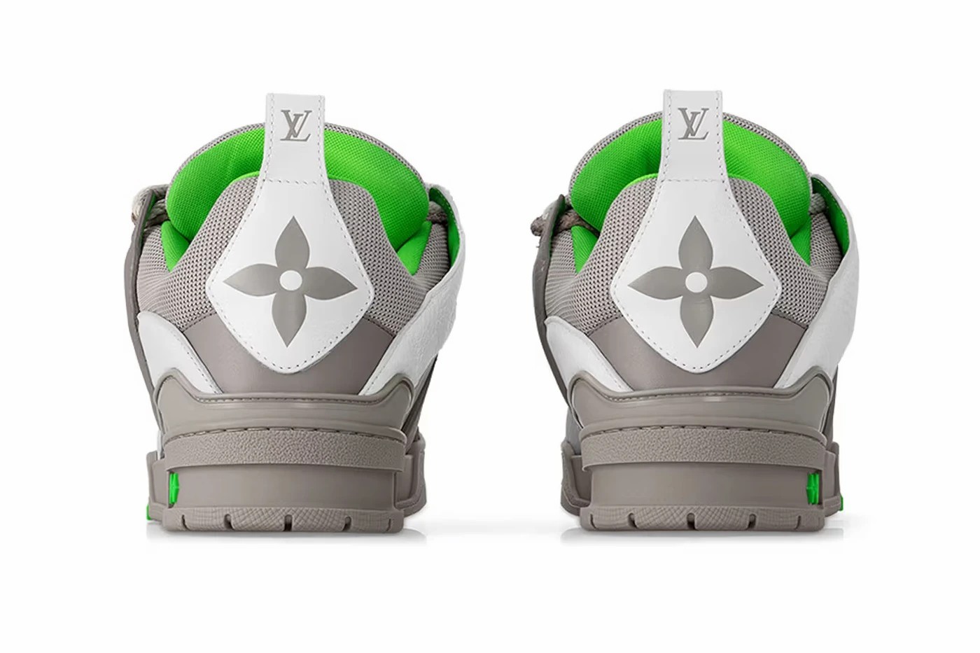 LV Trainer 被大家誉为是街头板鞋「毕业级单品」,不过这两年几乎没有一双 LV 新鞋达到如此高度。 最近,由客座创意总监 Colm Dillane 设计的 LV 最新滑板鞋上架官网,大家觉得怎么样呢? 通体暗色调呈现,部分细节点缀绿色。 将 LV 字样拆开,以夸张的变体呈现在鞋侧,单看这流线型的 L 字确实有点眼熟。 LV 老花图案在鞋身多次出现,辨识度相当高。 目前,LV Skate Sneaker 已在 LV 门店和官网上架,定价为 ¥10600 元,感兴趣小伙伴不妨留意。