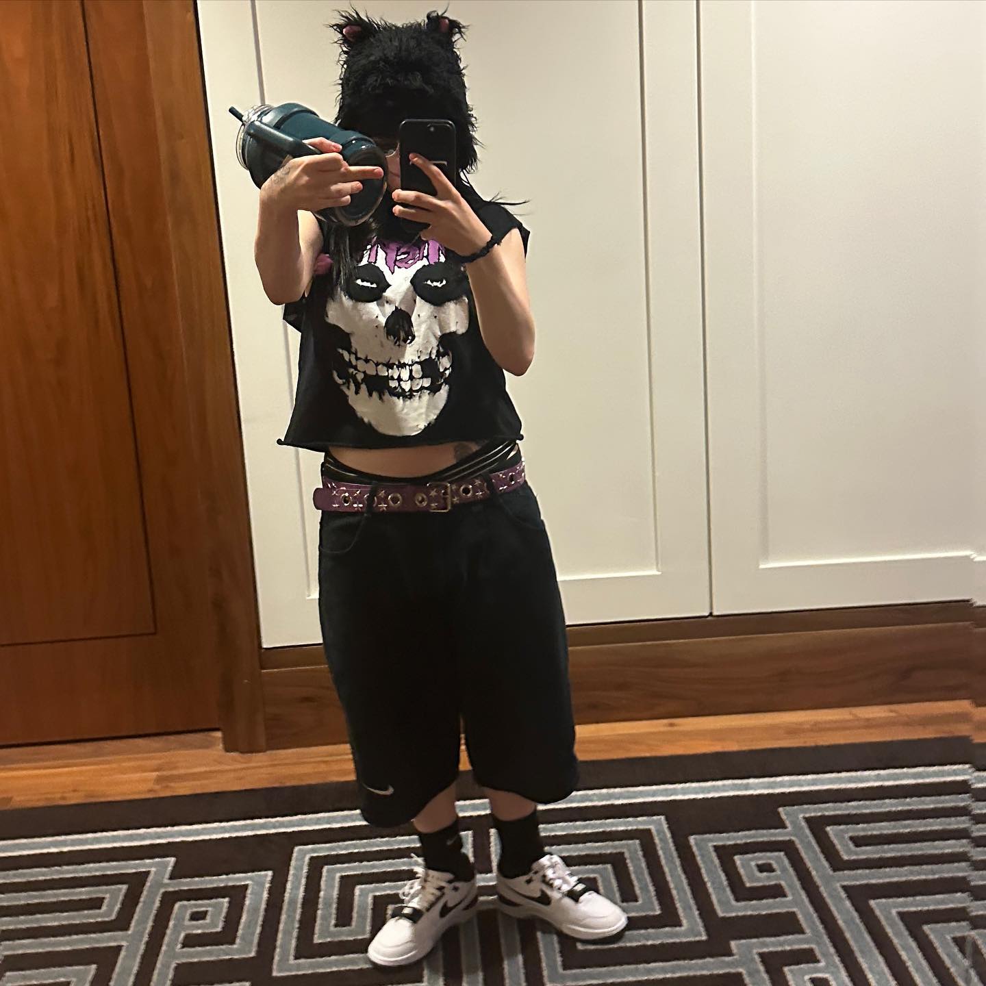 脚上踩了双 Billie Eilish x Nike Air Alpha Force 88。