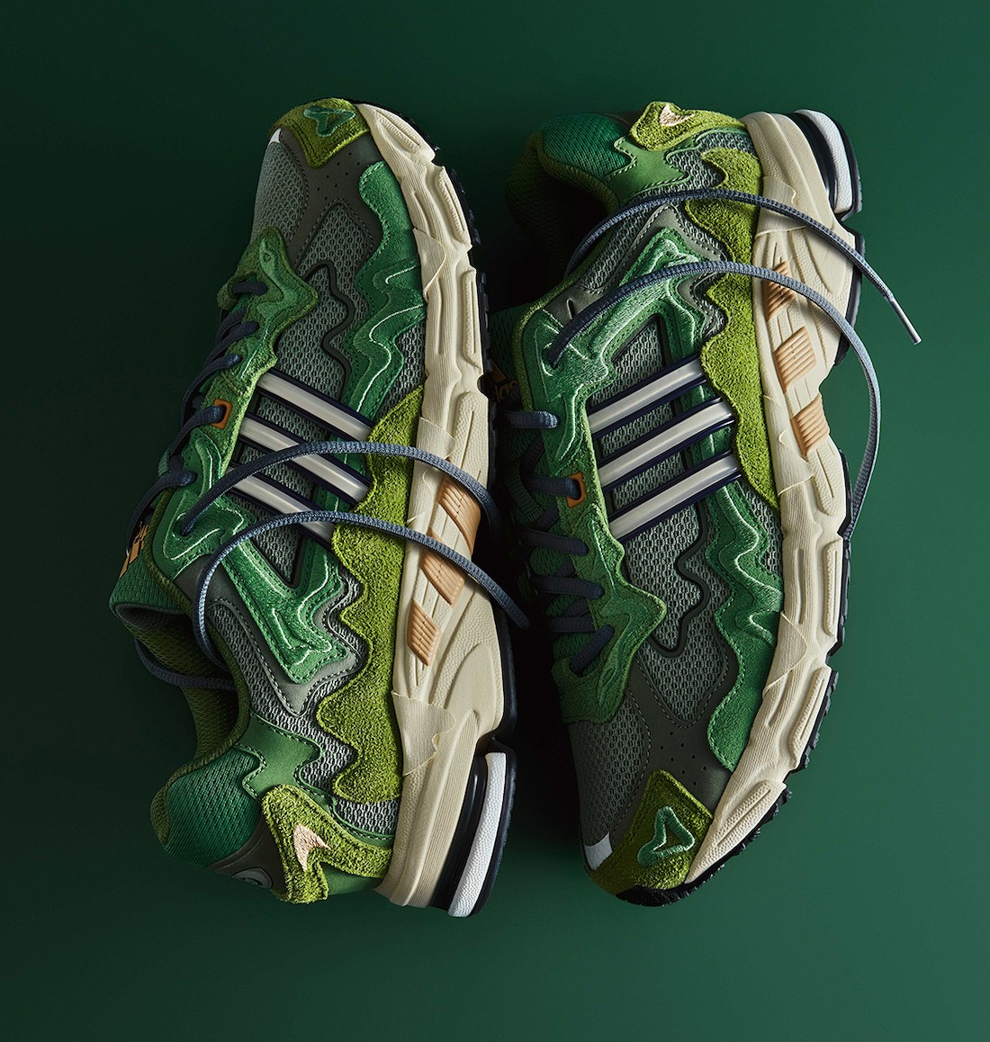 此次联名以 adidas Originals Response CL 为蓝本进行创作,鞋身罕见的以多种不同饱和度的草绿色为主调示人,视觉效果格外清新。