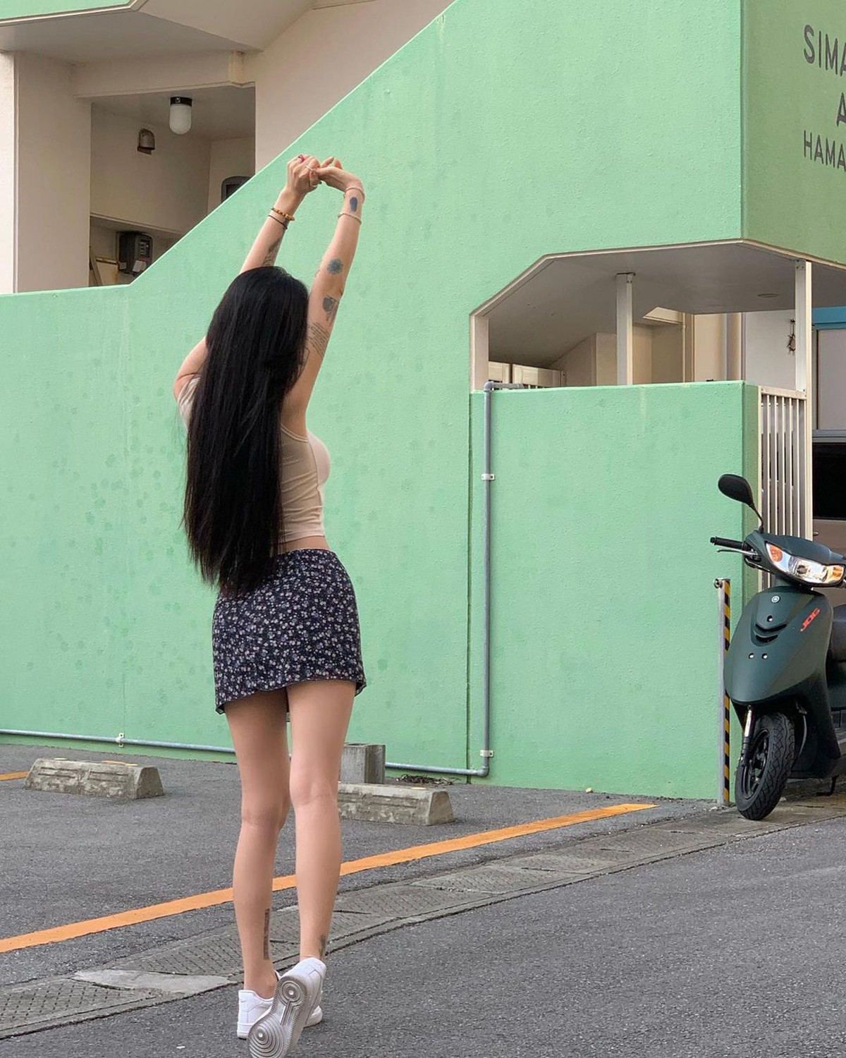 其实早在今年 6 月 Soda 就现身了三叶草活动,并身着一套紧绷运动套装和一双白绿配色 Adimatic,尽显火辣身材。