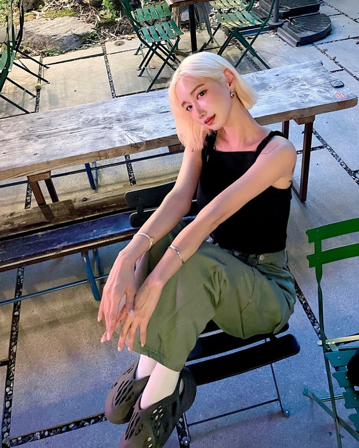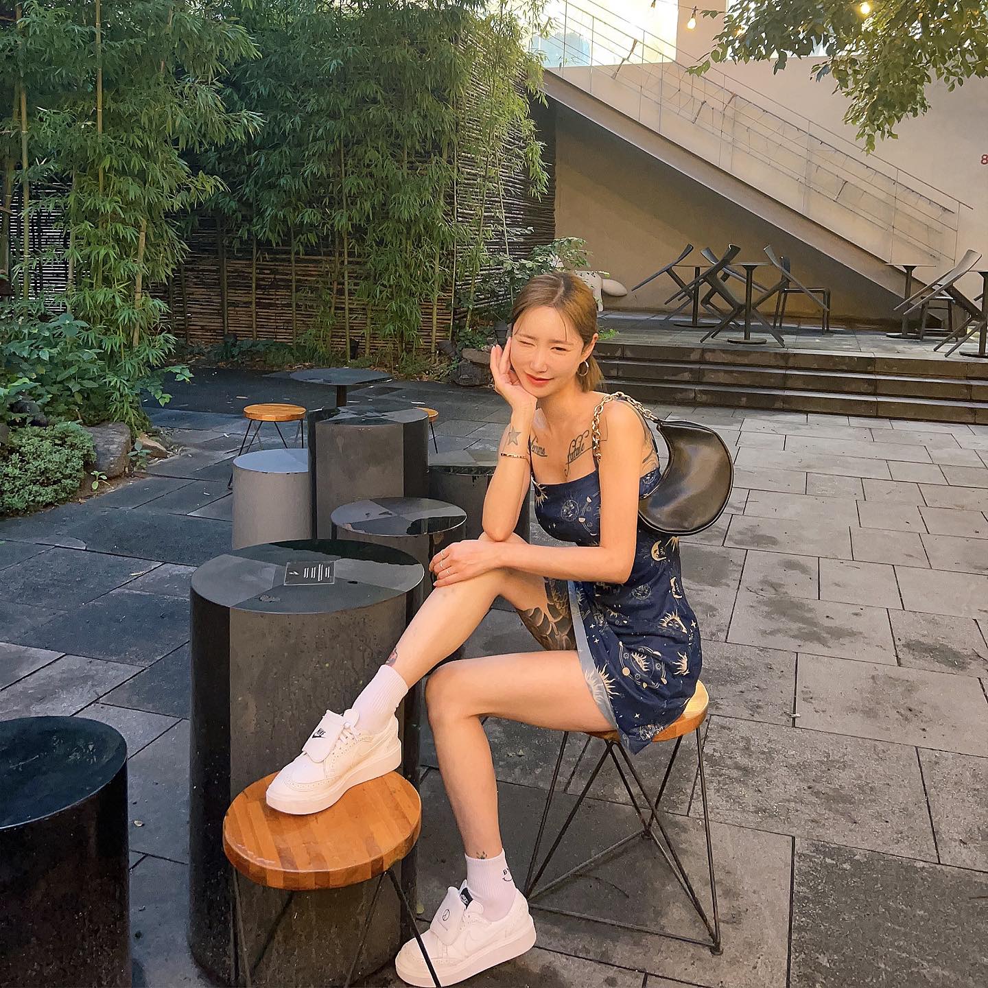 最最最重要的是,她非常钟爱用球鞋来进行搭配,像是 Air Force 1、Timberland 都经常出现在她的 OOTD 中。