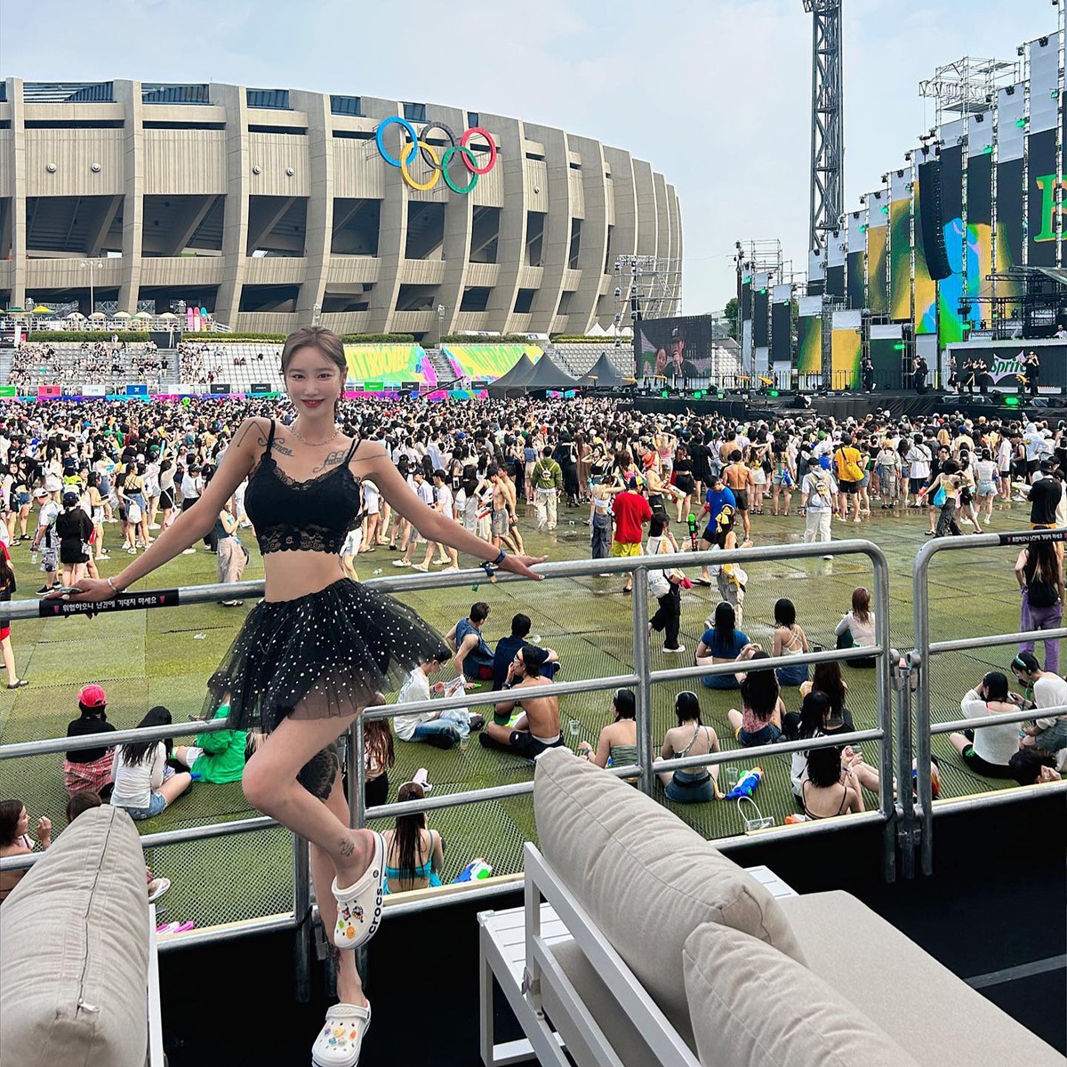 参加音乐节时主打舒适,依次上脚 BALENCIAGA Speed Trainer、Crocs 洞洞鞋、ASICS GEL-KAYANO 14 等,毕竟穿的舒服才能蹦的舒服。