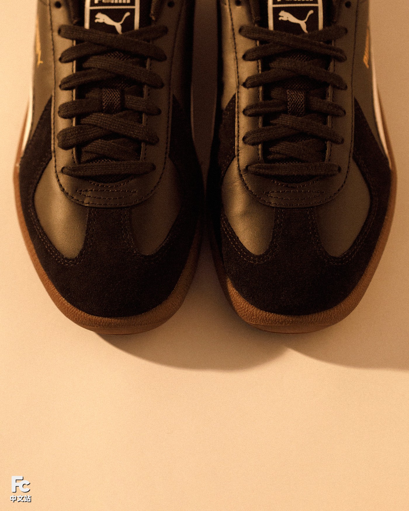 鞋侧面印有标志性白色 PUMA 跑道 和烫金美洲豹图案,彰显鞋款身份的同时,增添了一丝奢侈感。
