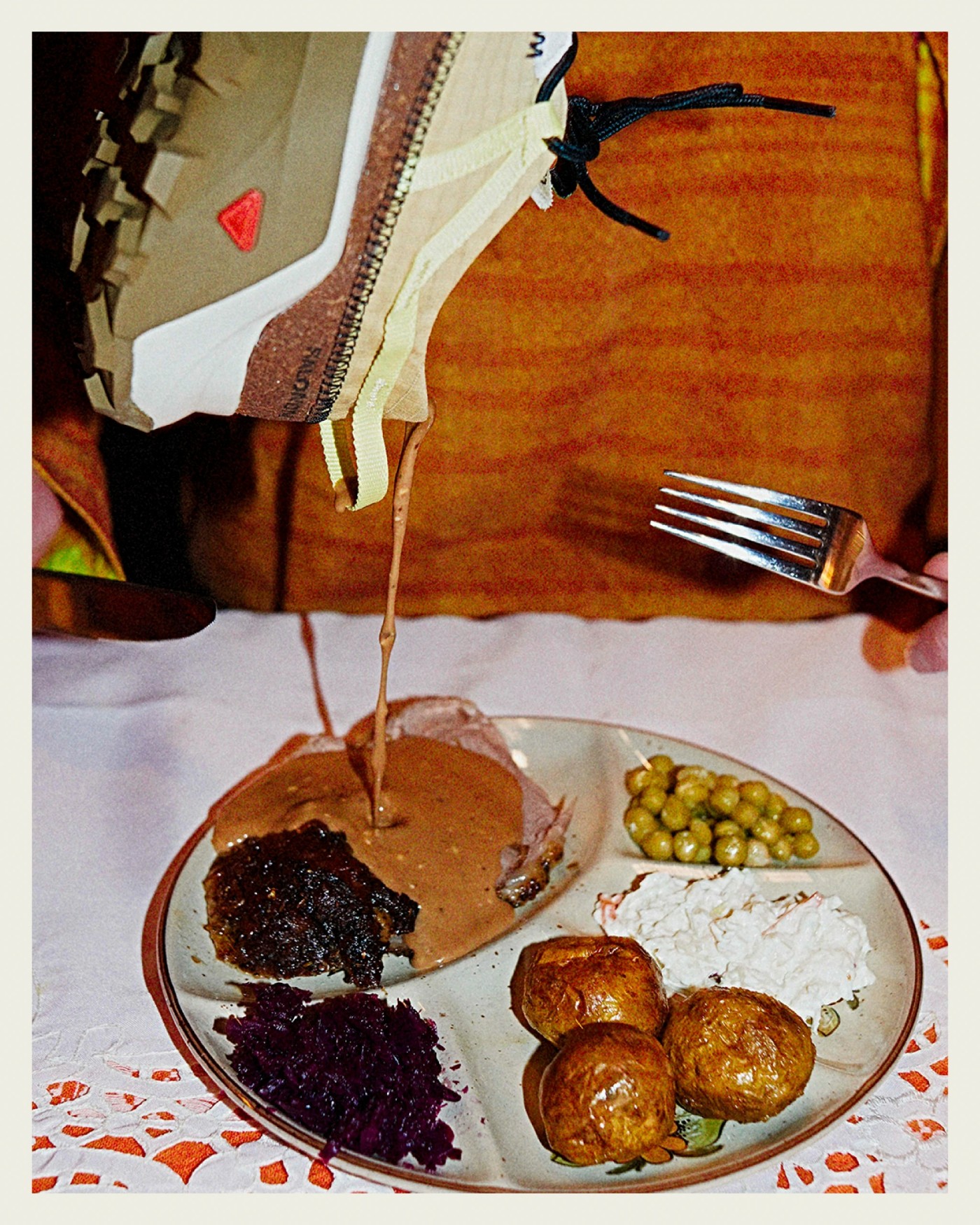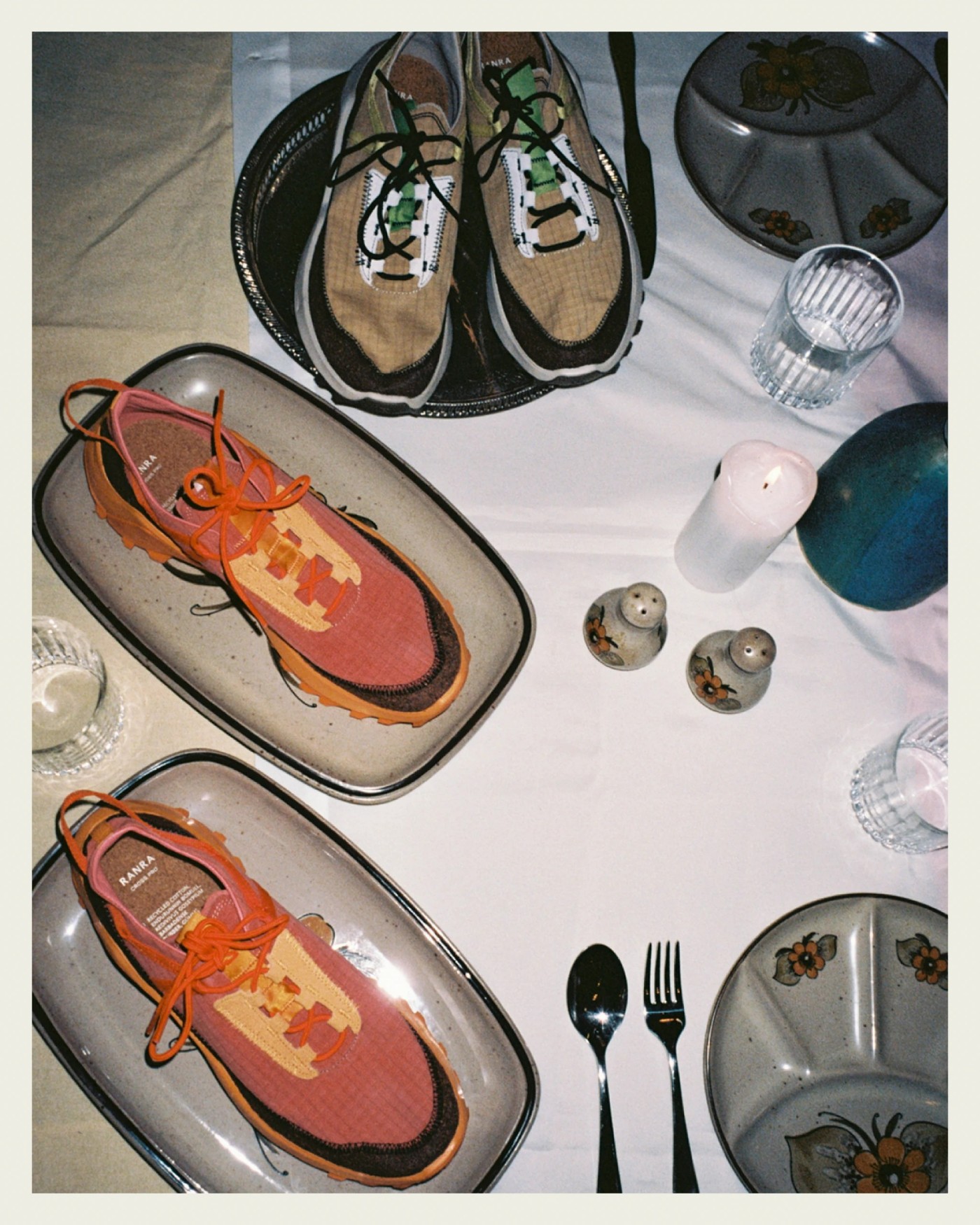 通过一系列餐桌主题呈现 Salomon Cross Pro For RANRA 合作鞋款。