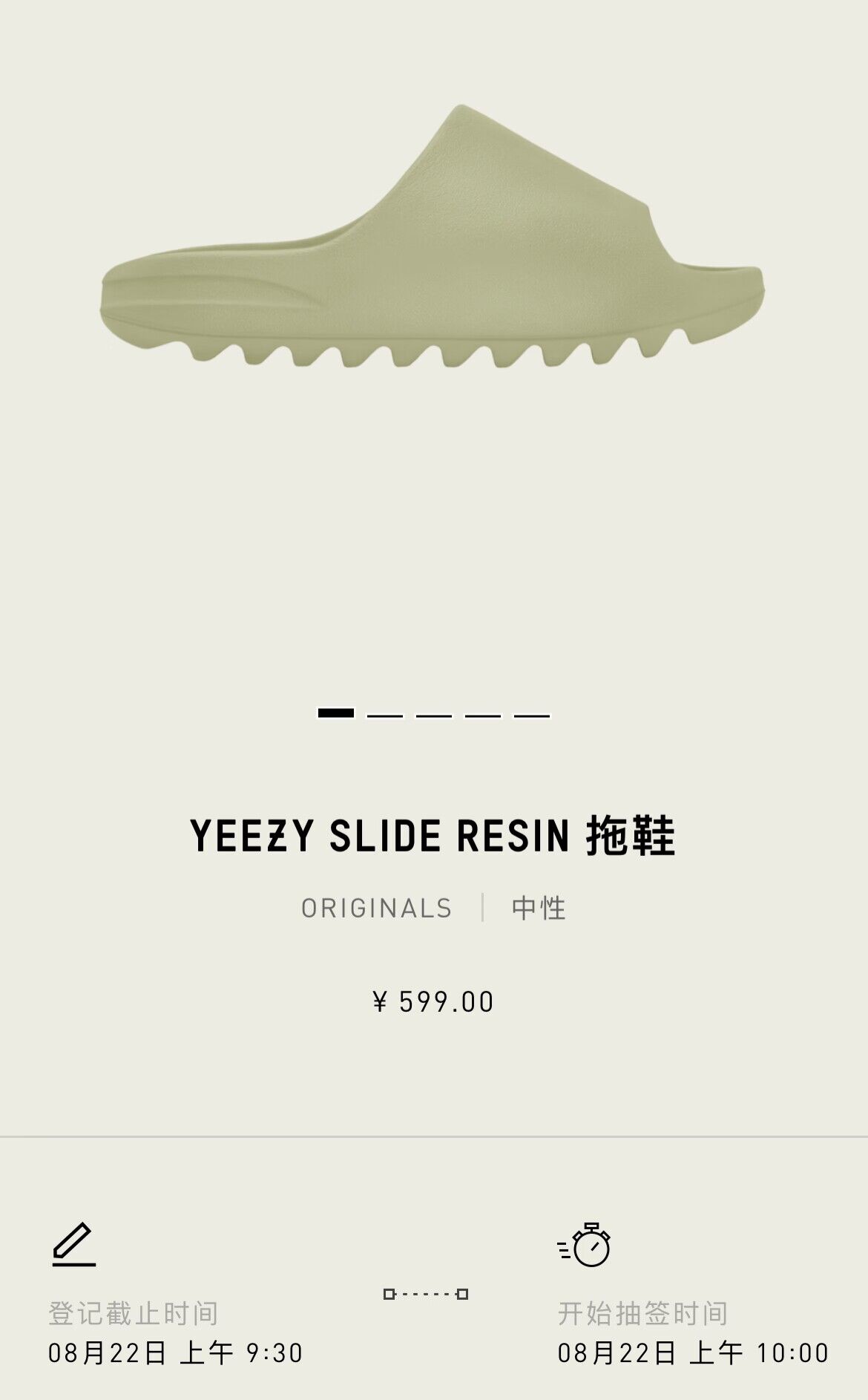 目前,全新配色的 Yeezy Slide 正式上架 CONFIRMED APP 并开始登记,将于明天上午 9 点半截止,10 点发售。