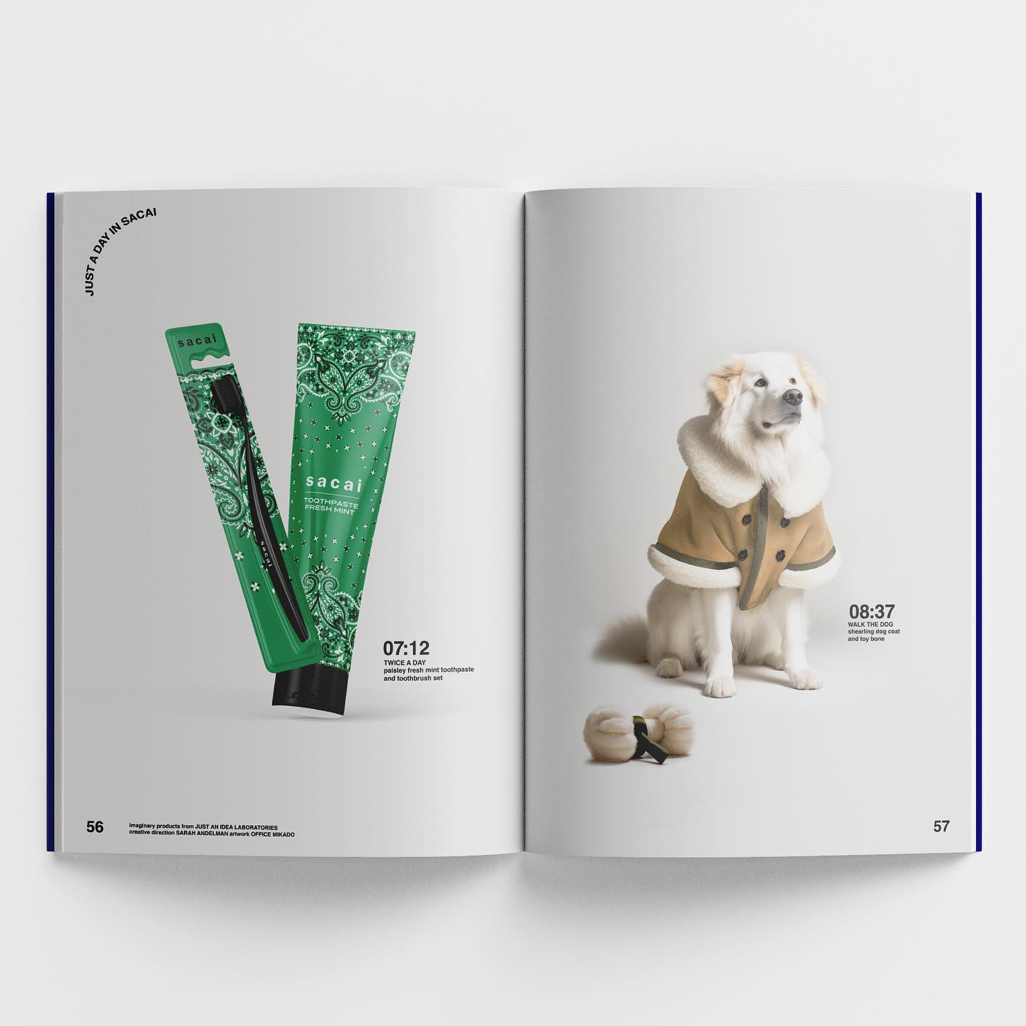 像是印有腰果花纹的牙刷,以及外包装印有 sacai 字样的 S 形士力架。
