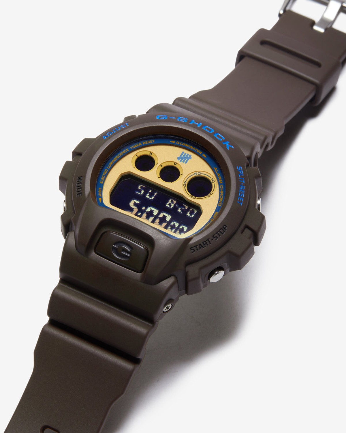 此次联名选择 G-SHOCK 经典表型 DW-6900 为蓝本,树脂表壳采用深棕色示人,辅以 UNDEFEATED 最经典蓝色点缀。