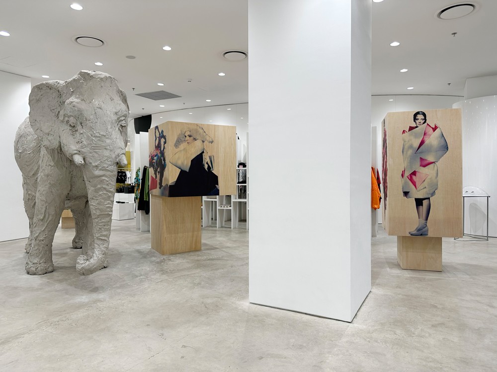 进入正门映入眼帘的是 COMME des GARÇONS 在 1 层 ELEPHANT SPACE 空间打造的 2023 秋冬系列特别装置。