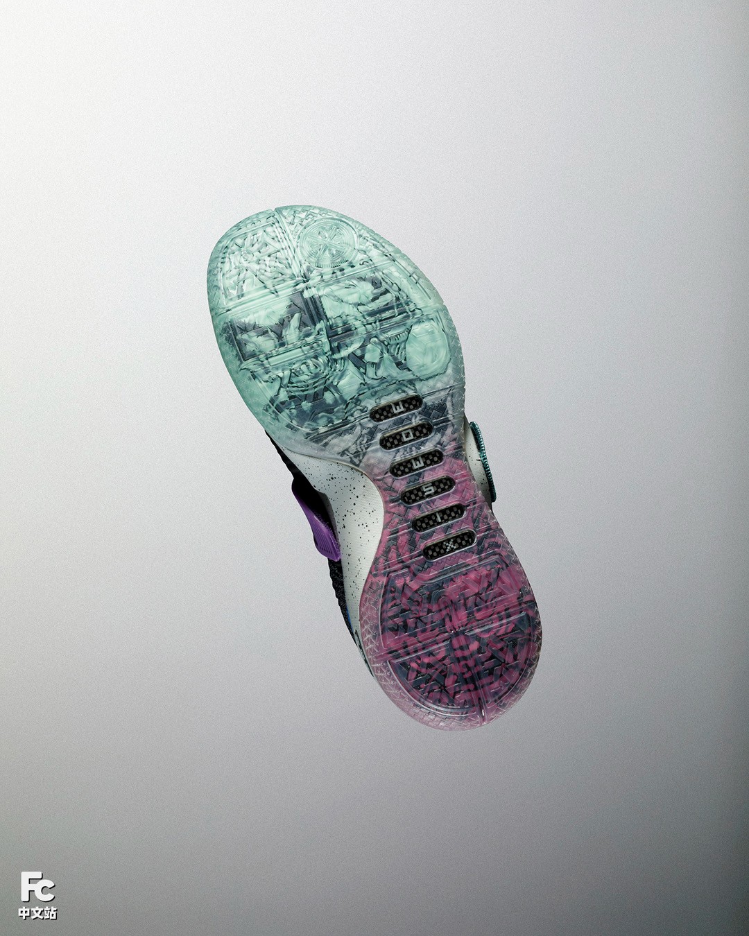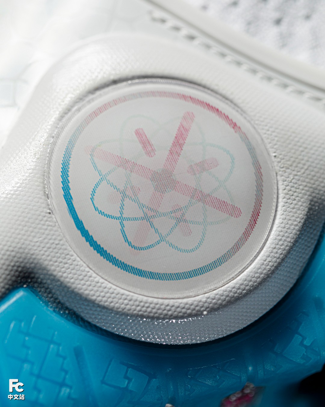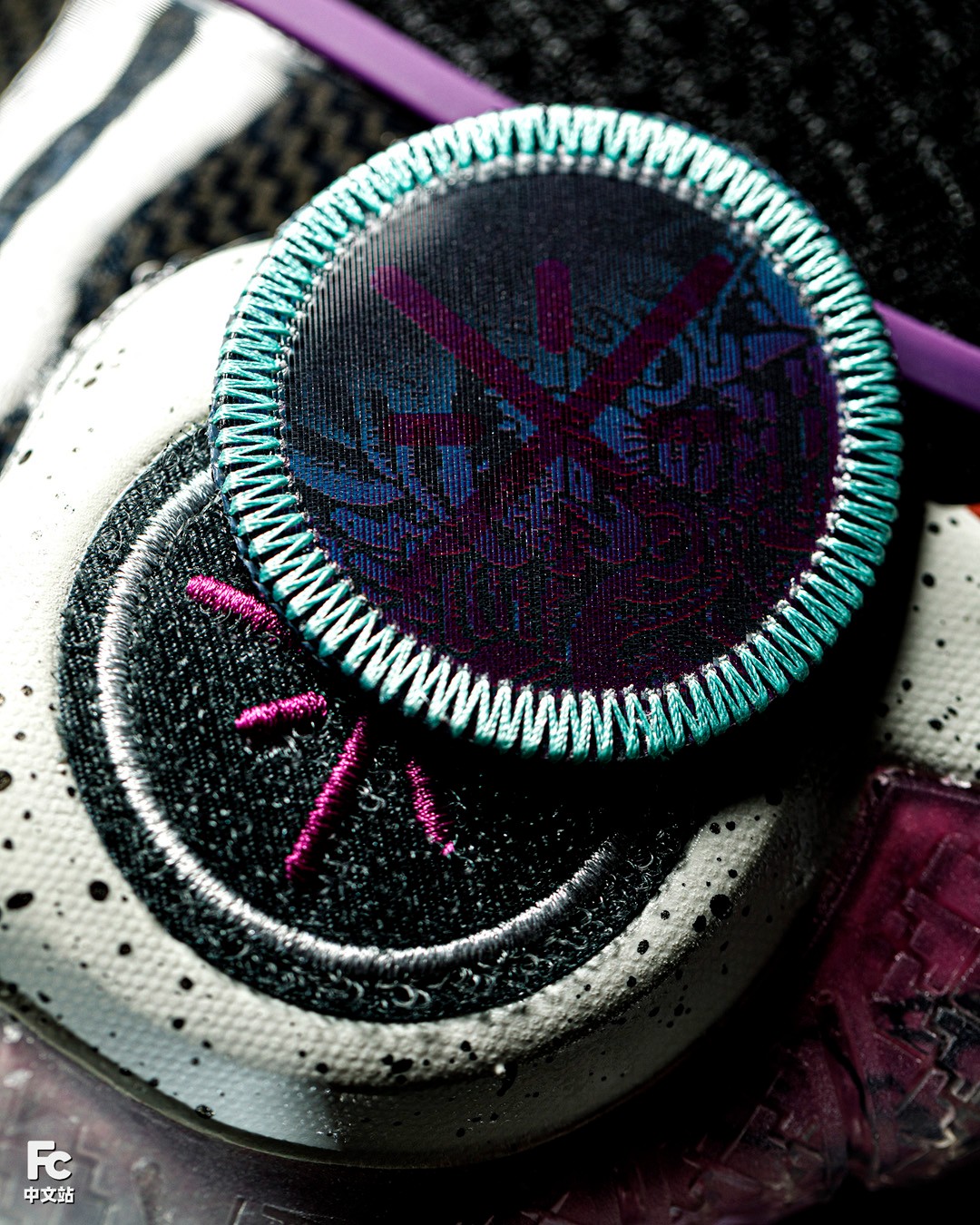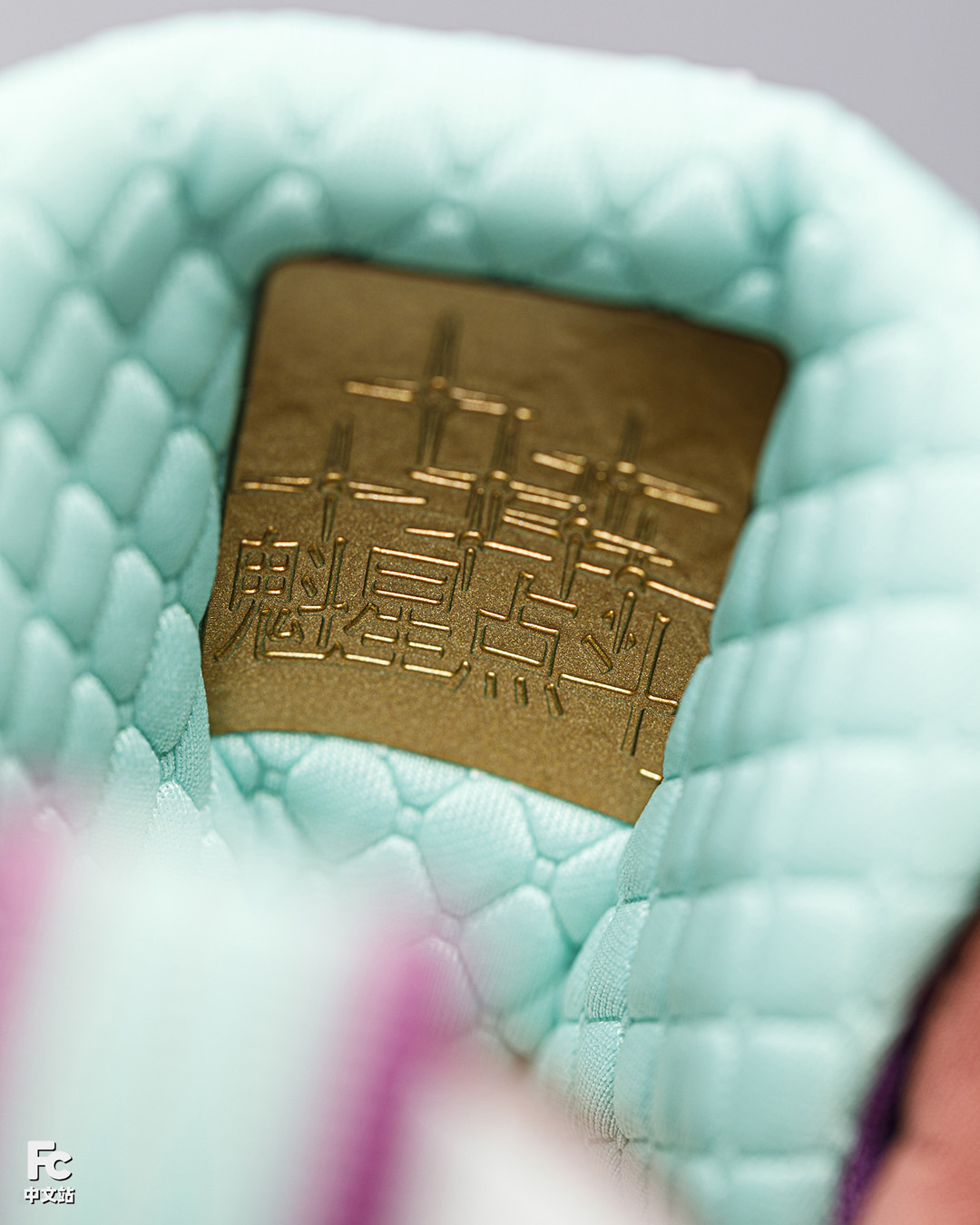 中底标志性圆形 Logo 处则比 “绝杀” 配色来的还精致,不仅有闪卡变幻效果,内部暗藏林文心设计的大魁星君图案。