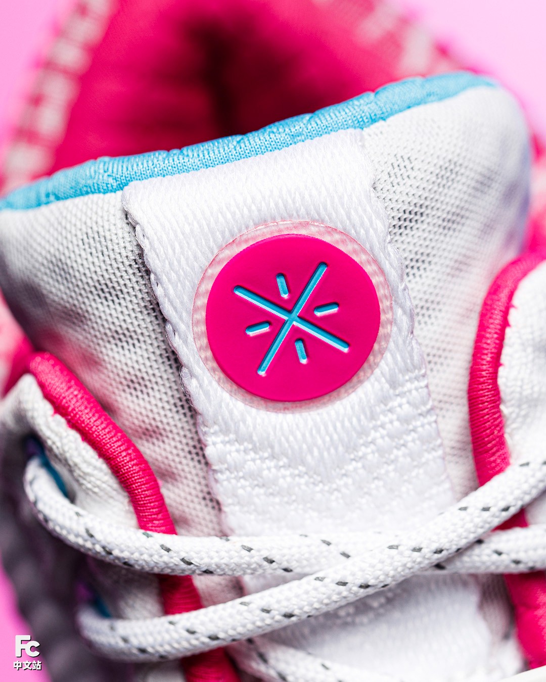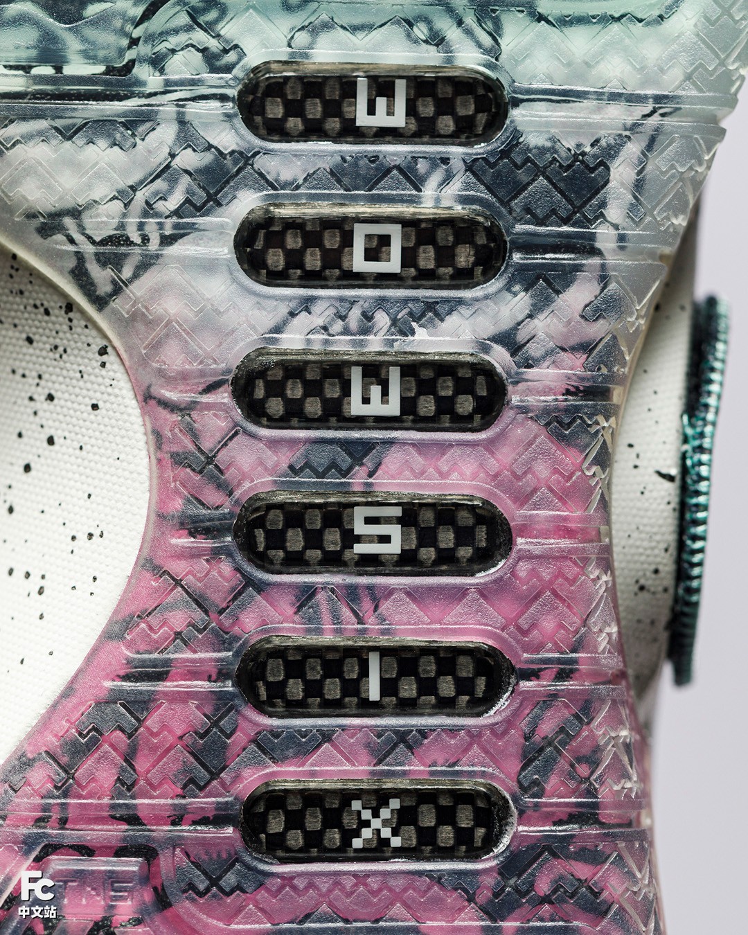 让小编最喜欢的改动是,将 WOW6 标志性的中底米字 Logo,由元年的刺绣造型改为了闪卡材质,在不同角度下形成图案和颜色的变化,简直不要太帅。
