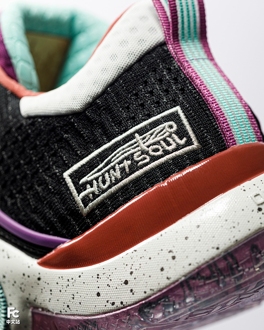 后跟刺绣则是林文心创办的独立艺术工作室:HUNTSOUL 的 Logo,彰显联名身份。