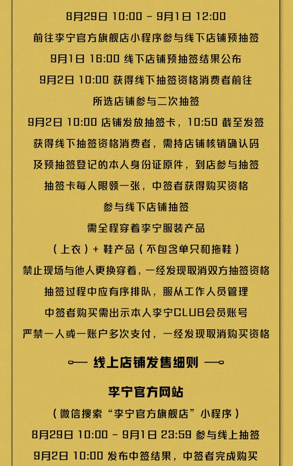 更多消息,敬请关注李宁篮球官方微信公众号小程序等,小编也在此预祝大家都能顺利中签,期待各位的喜讯!