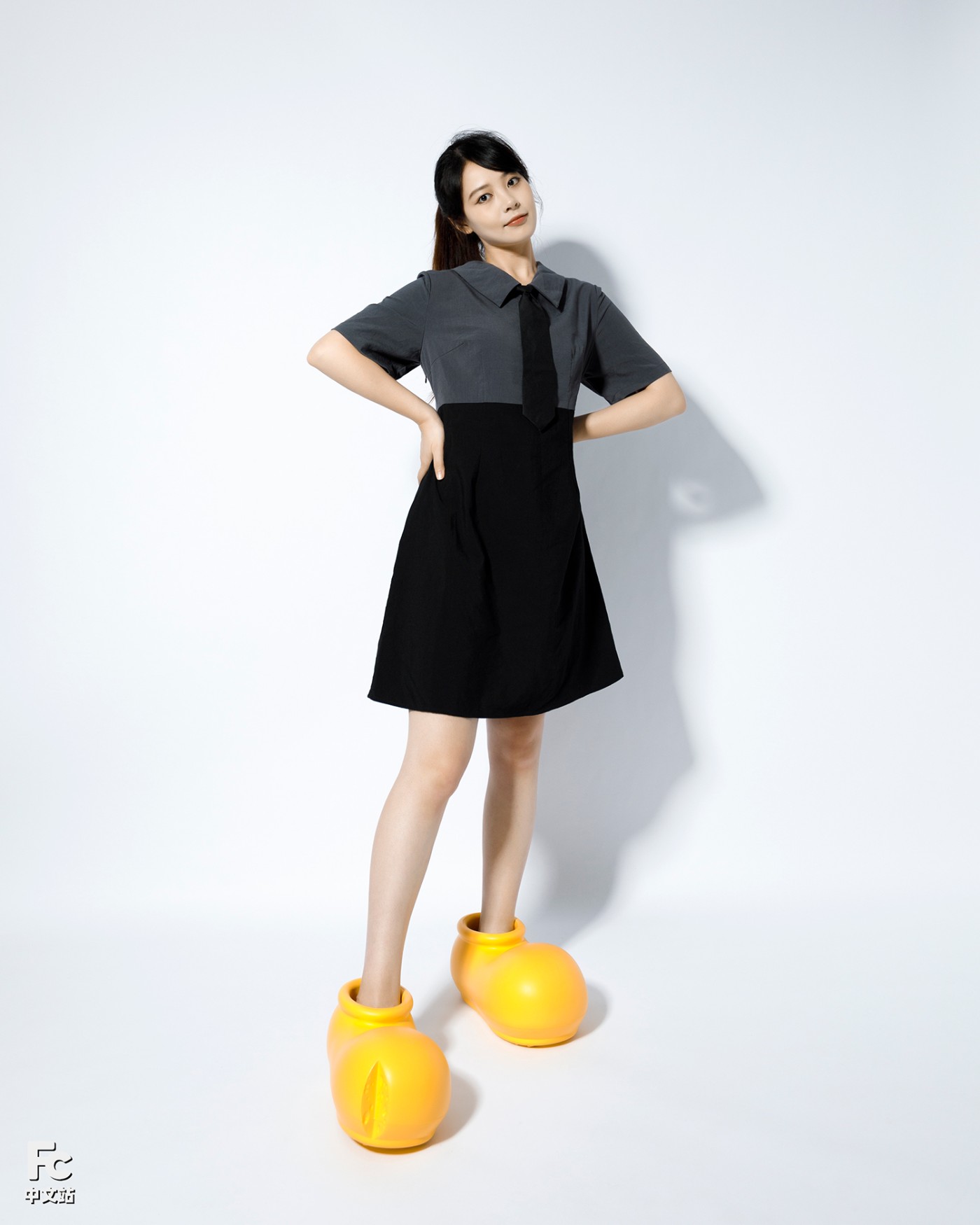 再来看小姐姐实物上脚,可以看出还是十分可爱的,不能说难以驾驭。