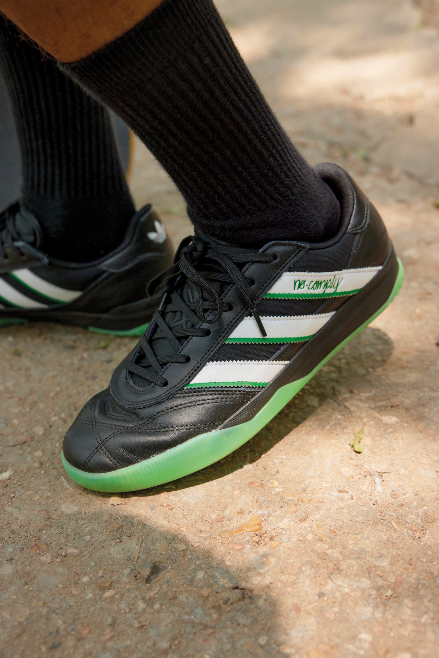 整双鞋以复古又冷门的 Copa Premiere 为蓝本打造,黑色搭配白绿点缀。