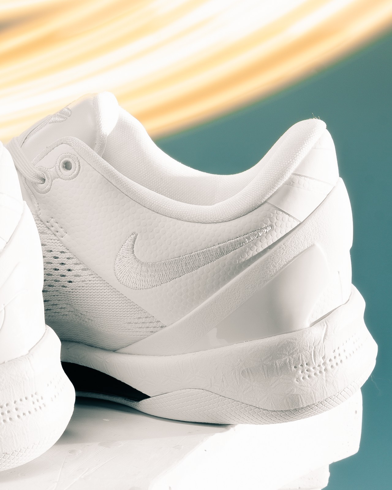 鞋款方面,就不给大家过度赘述了,整体纯白色装扮,致敬曼巴精神。