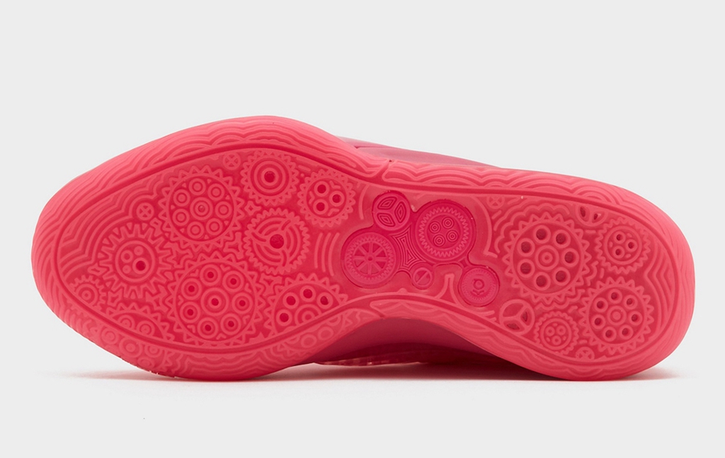 最后就是玫红色果冻外底,这次的 KD16 采用齿轮元素作为纹理灵感,在实战鞋中也算是非常新奇的设计了,期待它的实战表现。