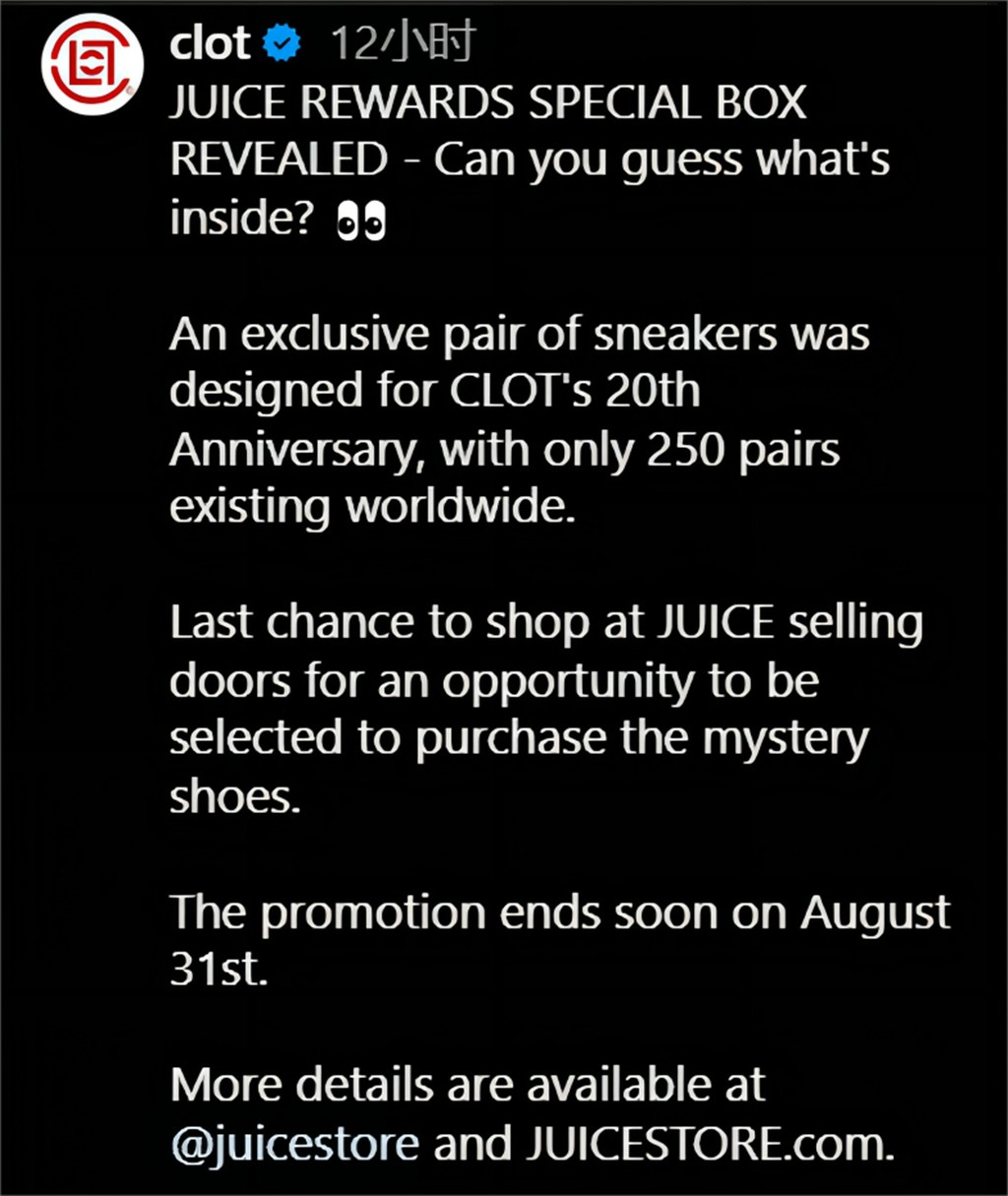 同时记得关注「超限量 250 双」的神秘鞋款究竟是什么!