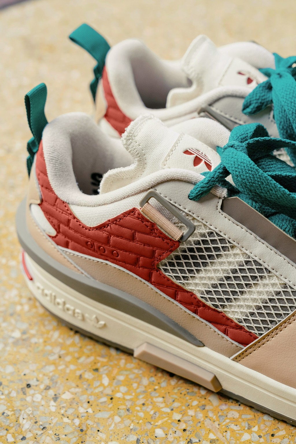 可以从鞋身看到代表武康大楼的红砖色,以及代表武康路旁墙体的灰色,相信去过这里的玩家看到这双鞋一定都回忆满满。