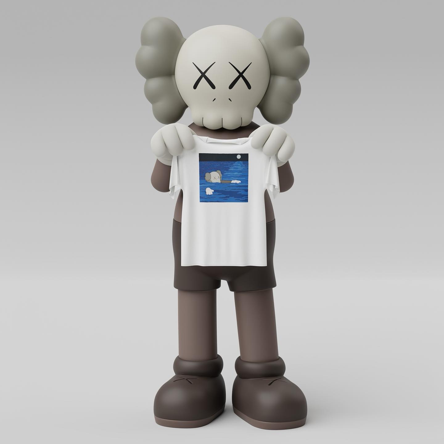 此次联名选择 2021 年 KAWS 作品《What Party: Tide》为印花附着在短 T 之上,直接将联名身份尽显。
